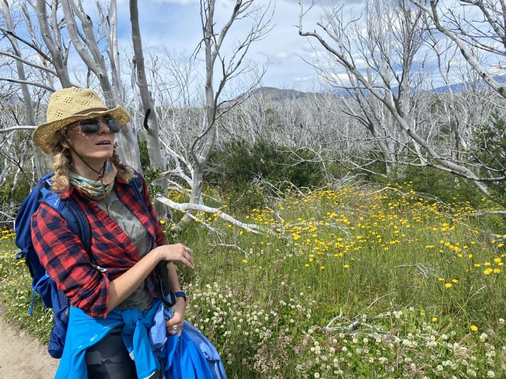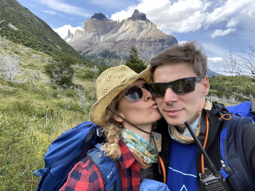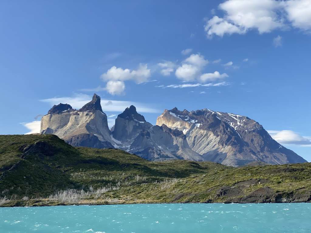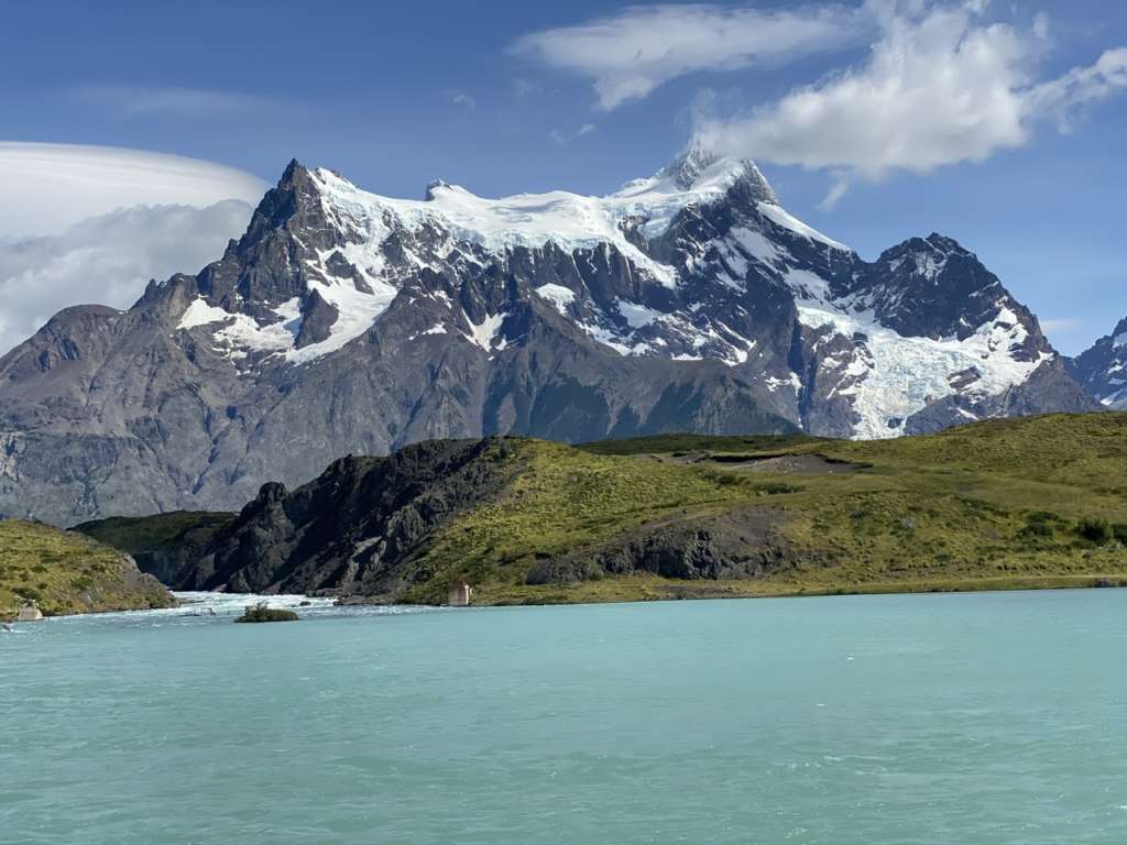 La rando de 8km jusqu’au camp des italiens est en tant que telle grandiose. On longe le lac Pehoe d’un bleu tantôt turquoise, tantôt profond d’un côté, et on le massif Paine de l’autre,  Les Cuernos, « la montagne en forme de Cornes » en face de nous en ligne de mire . On traverse tantôt la steppe, tantôt la pampa, on passe au milieu de forets qui ont été brûlées et dont les troncs blancs contrastent avec les fleurs jaunes et le bleu turquoise du lac.