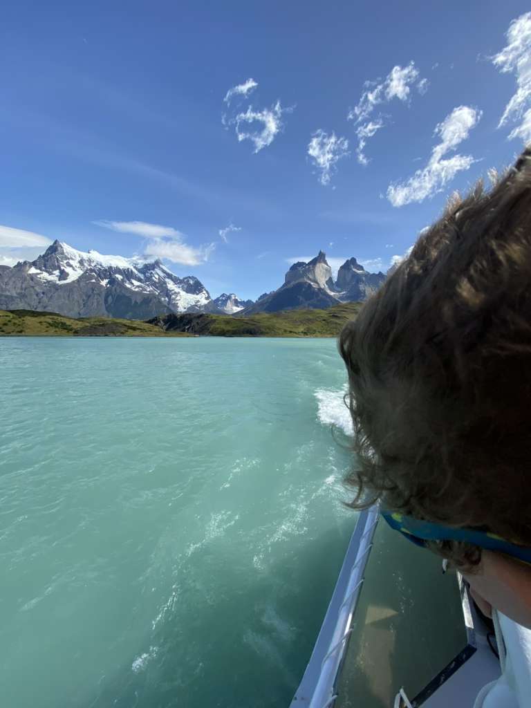J’ai juste le temps d’attraper Noah et de nous abriter derrière la cabine qu’une deuxième vague arrive et fini de tremper le reste des occupants. En plus, ici, les icebergs du Grey glacier sont omniprésents donc l’eau est absolument gelée.