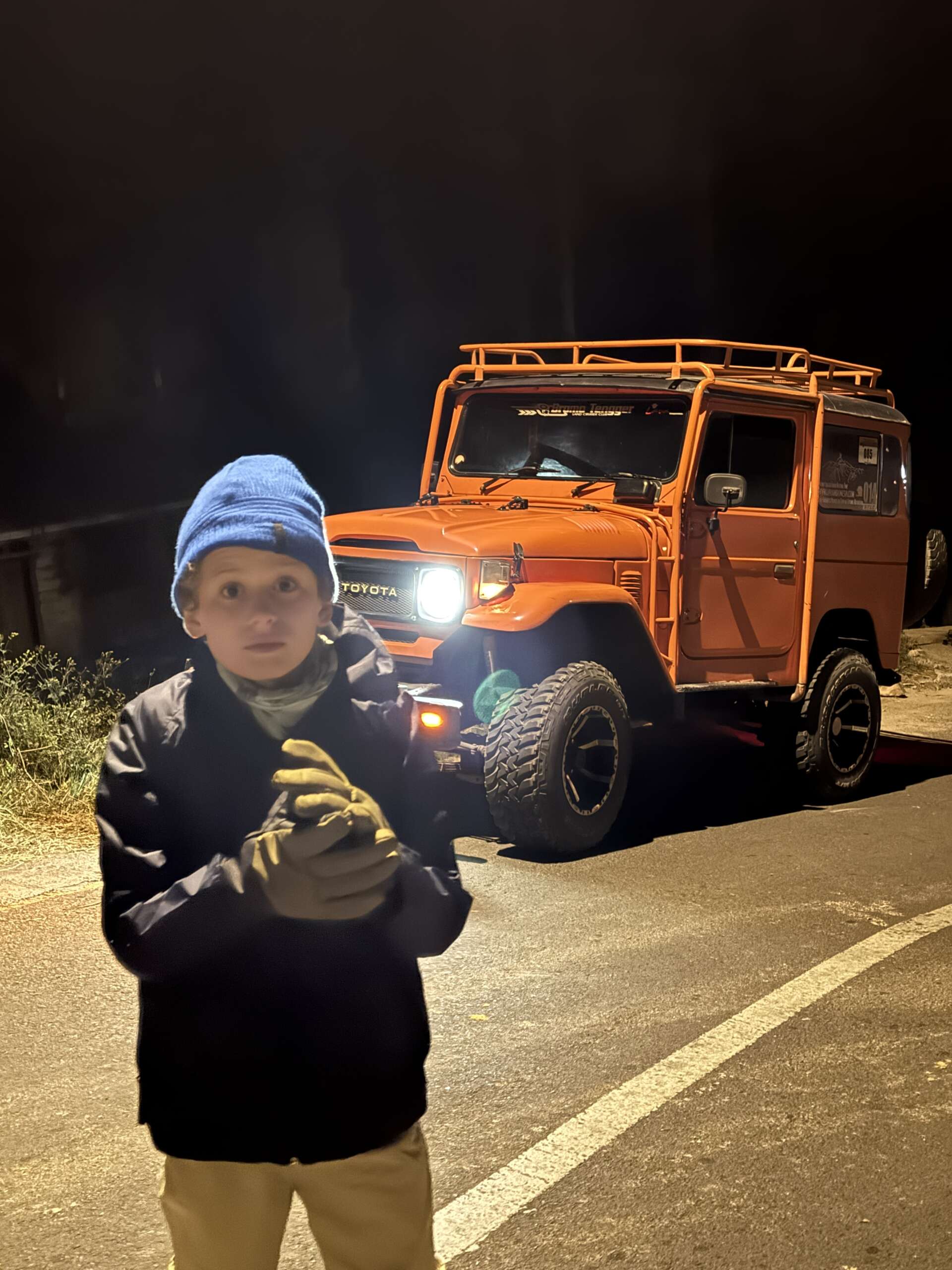 Driiiiiing. 2h30. On ne peut même pas dire vraiment que ça pique. Noah, malgré ses 4 heures de sommeil se lève du bon pied. En 10 minutes on s’est habillé presque pour le ski. On va grimper un peu au-dessus de 2 700 mètres, il va faire 5 à 10 degrés, ça change de la chaleur étouffante de la jungle.
