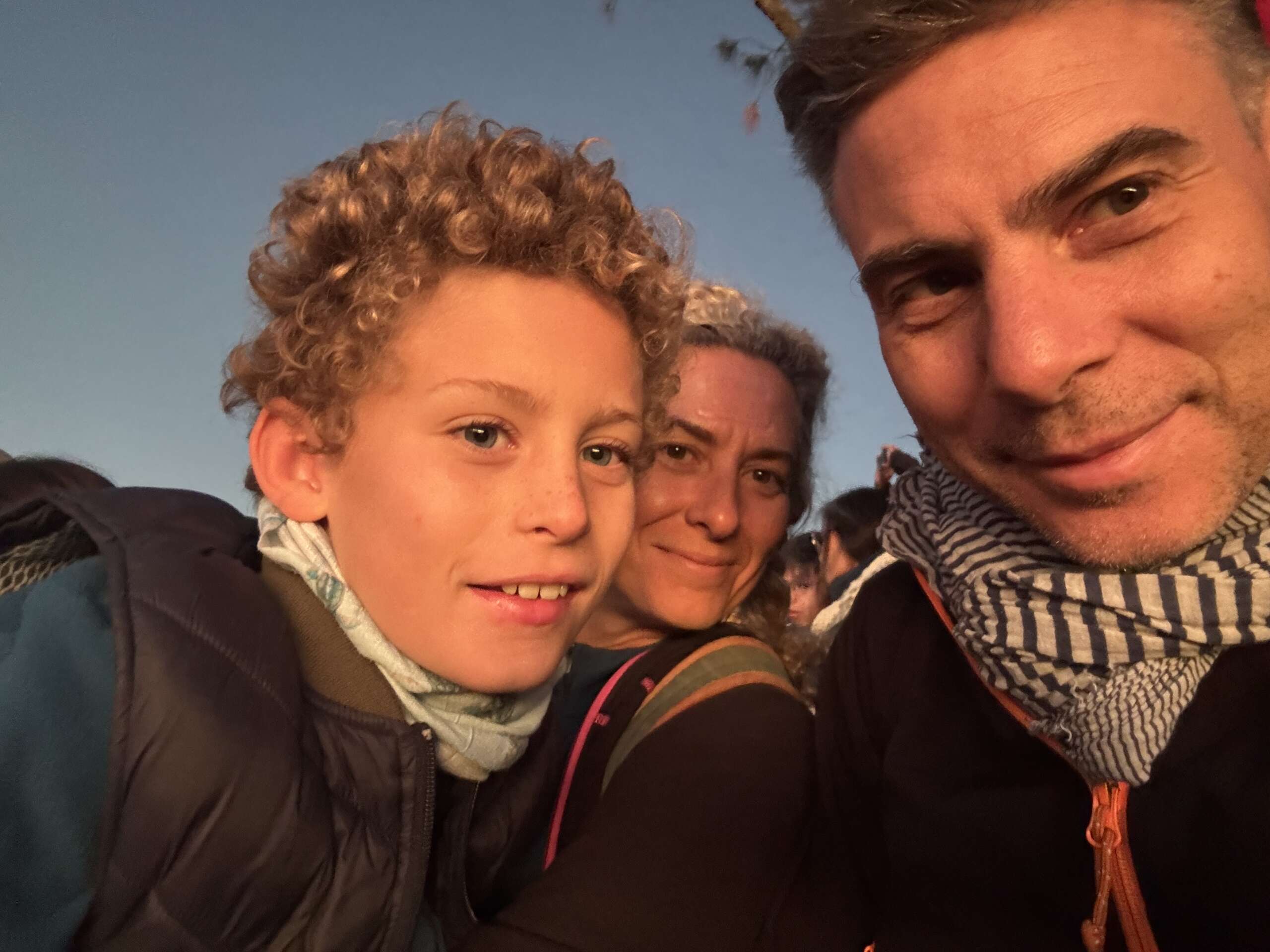 En revanche la bonne nouvelle c’est qu’on est donc essentiellement avec des gens qui ont l’habitude de marcher, du coup ils se comportent bien et on n’a pas les touristes boulets qui se lèvent et emmerdent tout le monde pour prendre leur photo qui de toute façon sera mal cadrée car tout est à l’avenant. On trouve ainsi un endroit où s’asseoir tous les 3. On se tient chaud car il doit faire 10 degrés maintenant. Noah récupère un peu de sa montée et retrouve des couleurs.
