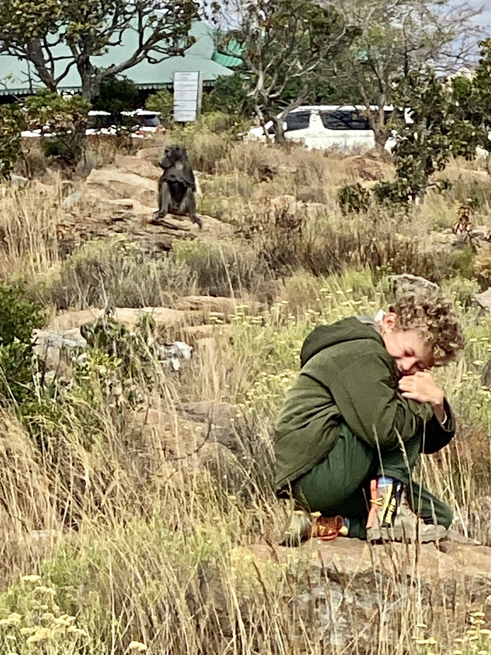 La aussi, le temps gris affadi un peu la palette colorielle, mais ne faisons pas les blasés. Cela reste sympa quand même. Puis déjeuner sur l’aire de pique-nique à côté que Noah délaissera rapidement pour jouer à cache-cache avec un babouin.