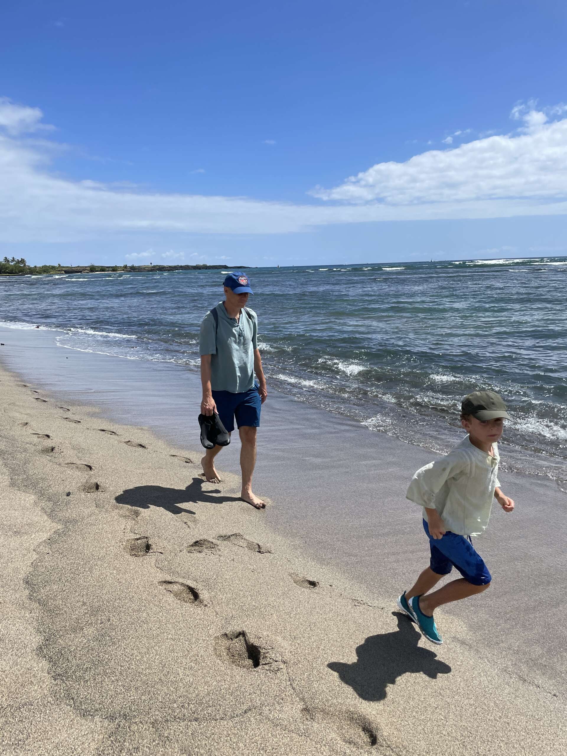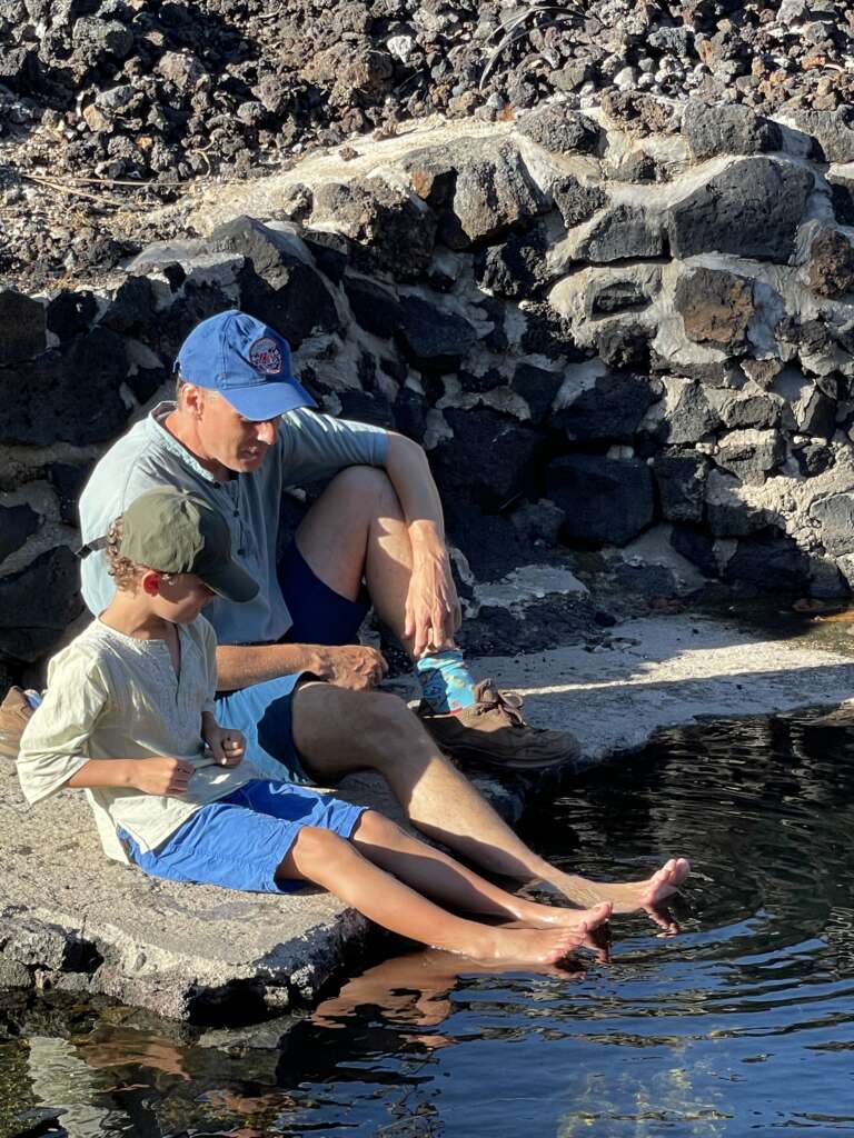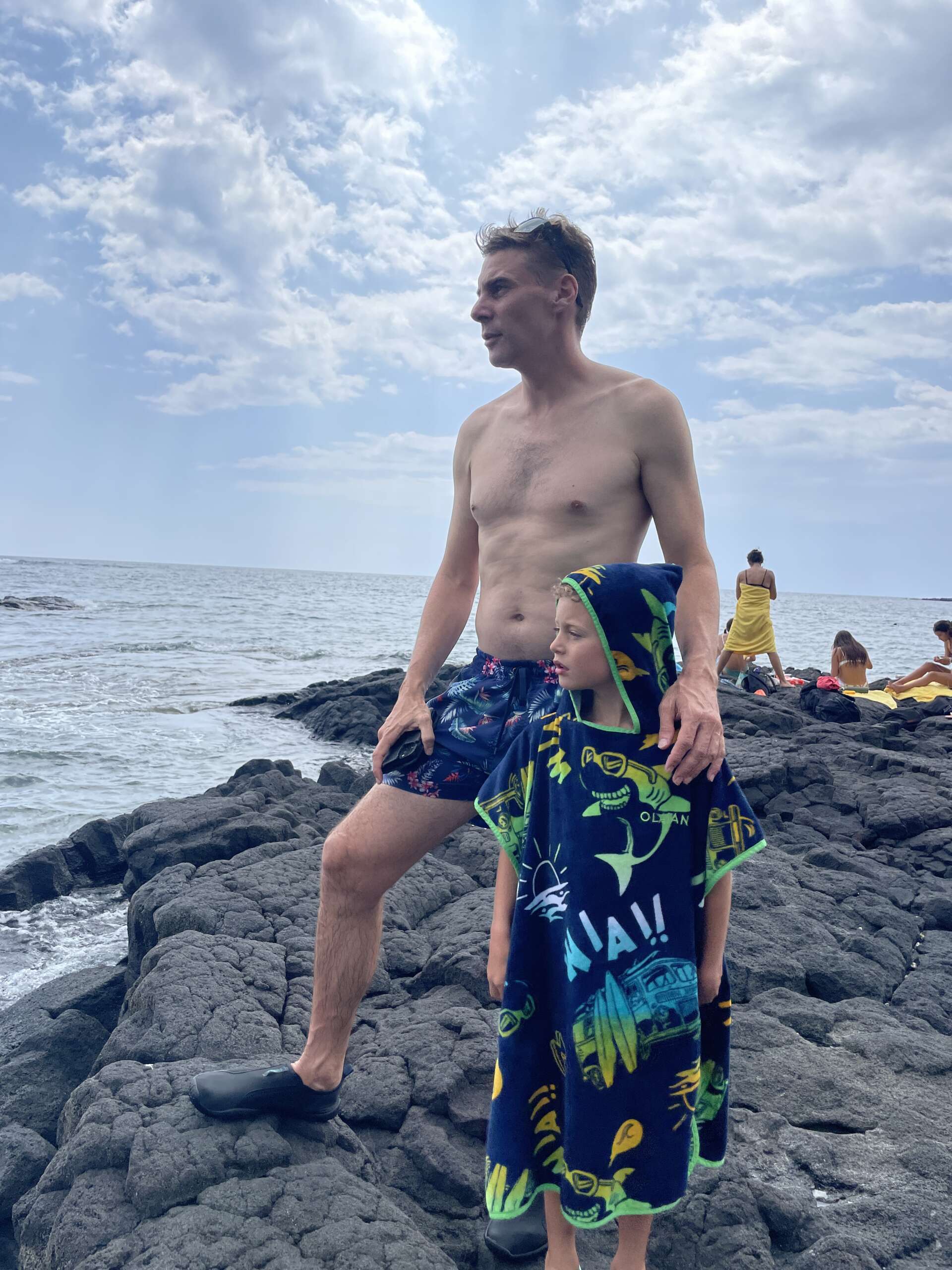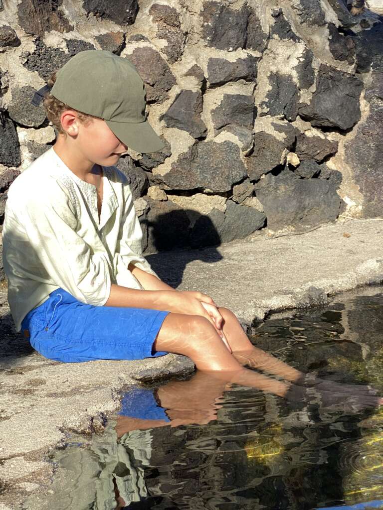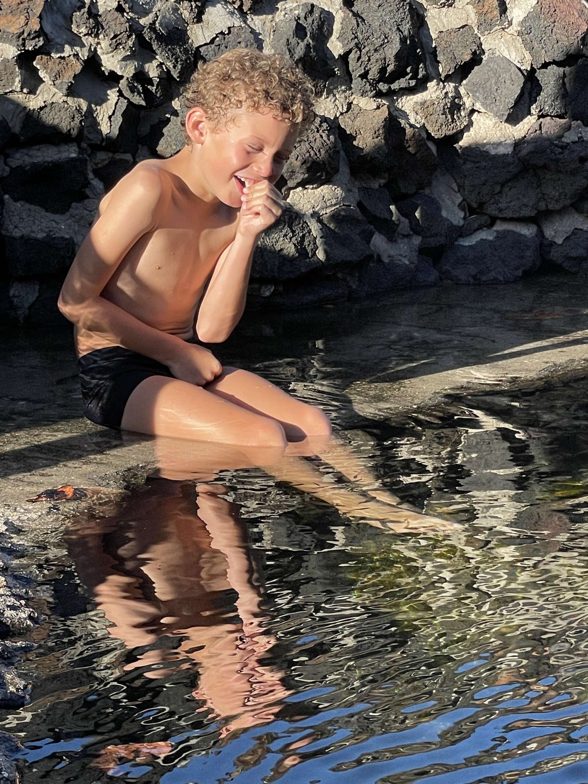 Réveil à 8h. Noah a dormi 12h. Du jamais vu. Il s’est bien géré et n’est pas peu fier quand on le lui dit. Pas eu besoin de médocs, la fièvre est tombée. Le Covid a été court on dirait. En revanche il a à nouveau mal au ventre et impossible de l’emmener petit déjeuner. Il faudra attendre 9h pour qu’il quitte la position allongée et que l’idée d’aller faire du snorkeling aux 2 marches pour tenter de voir des tortues le motive et le remette d’aplomb.