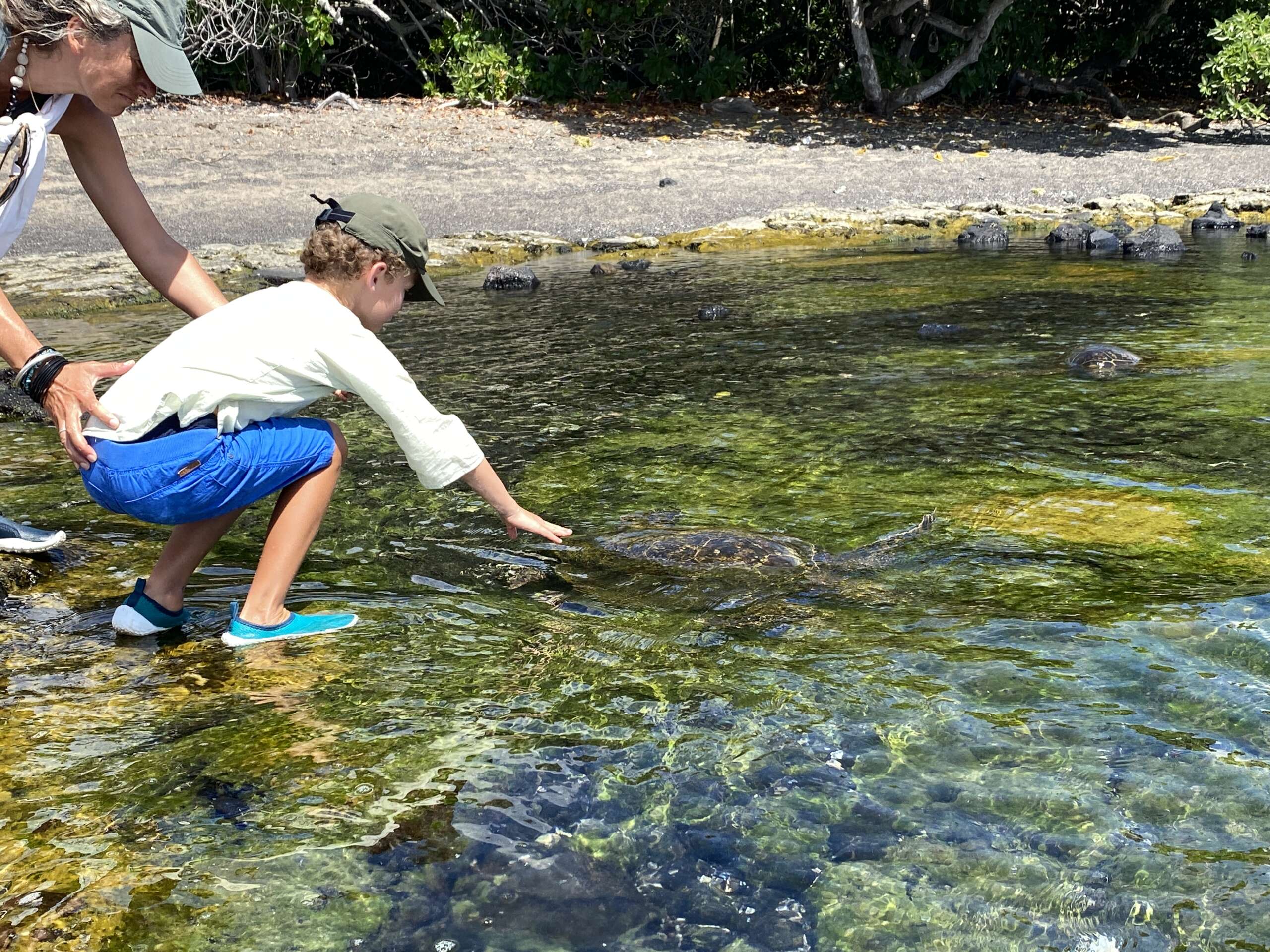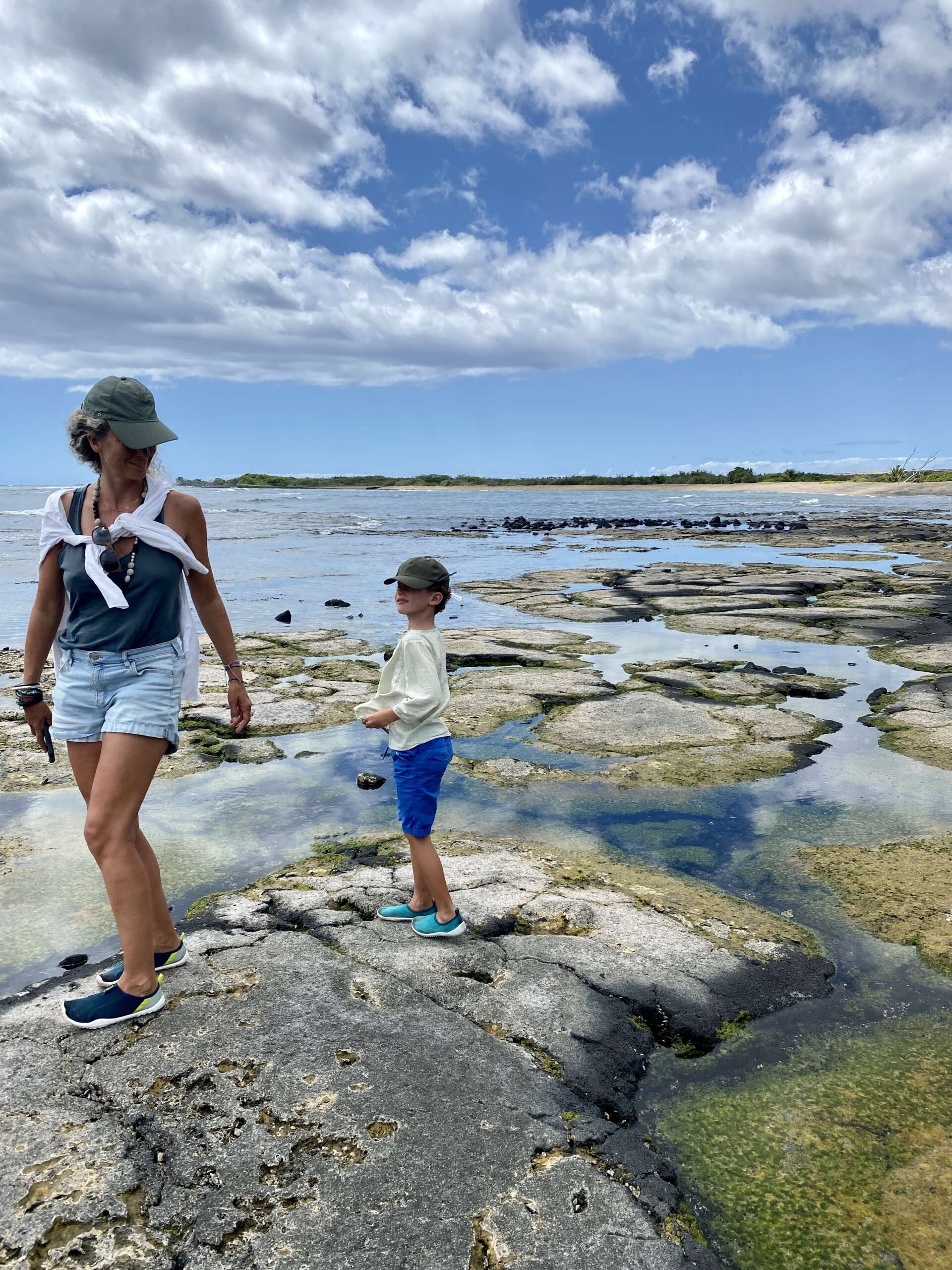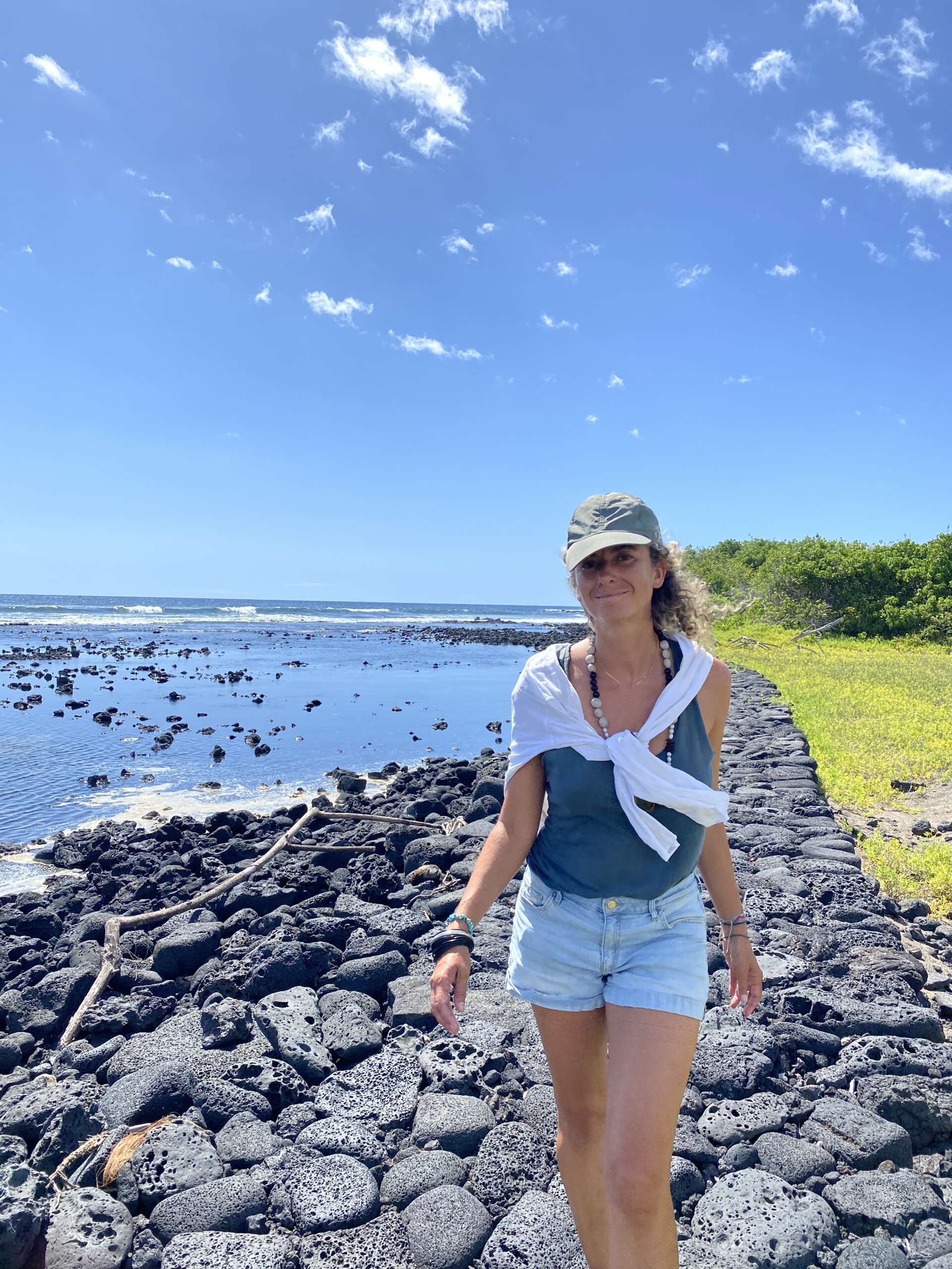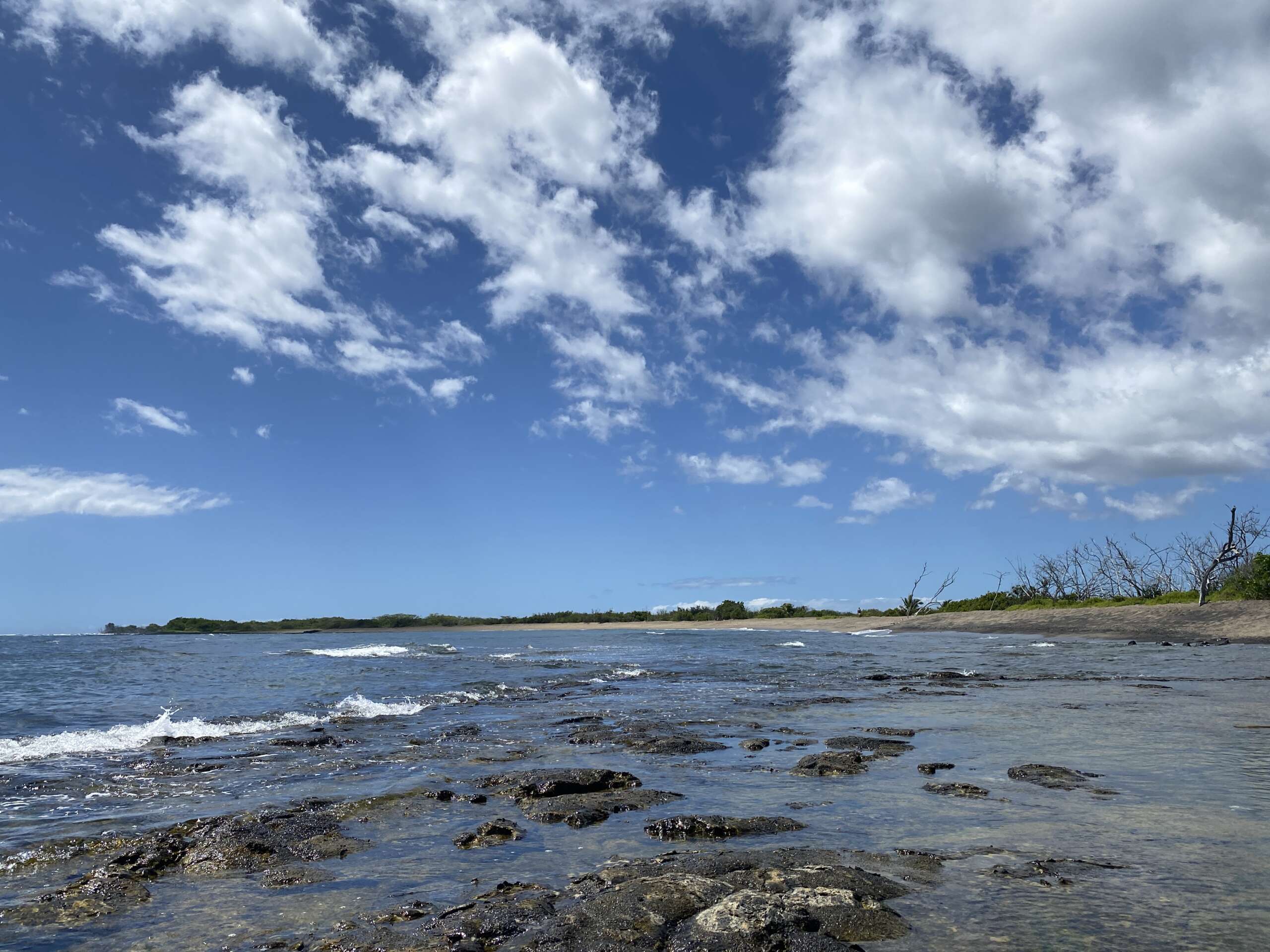 300 mètres après avoir garé la voiture, on débouche sur la plage de Honokohau. Il ne faudra pas 5 minutes de marche pour que Virginie spotte une première tortue entre les rochers dans des petites piscines naturelles créées par la marée.