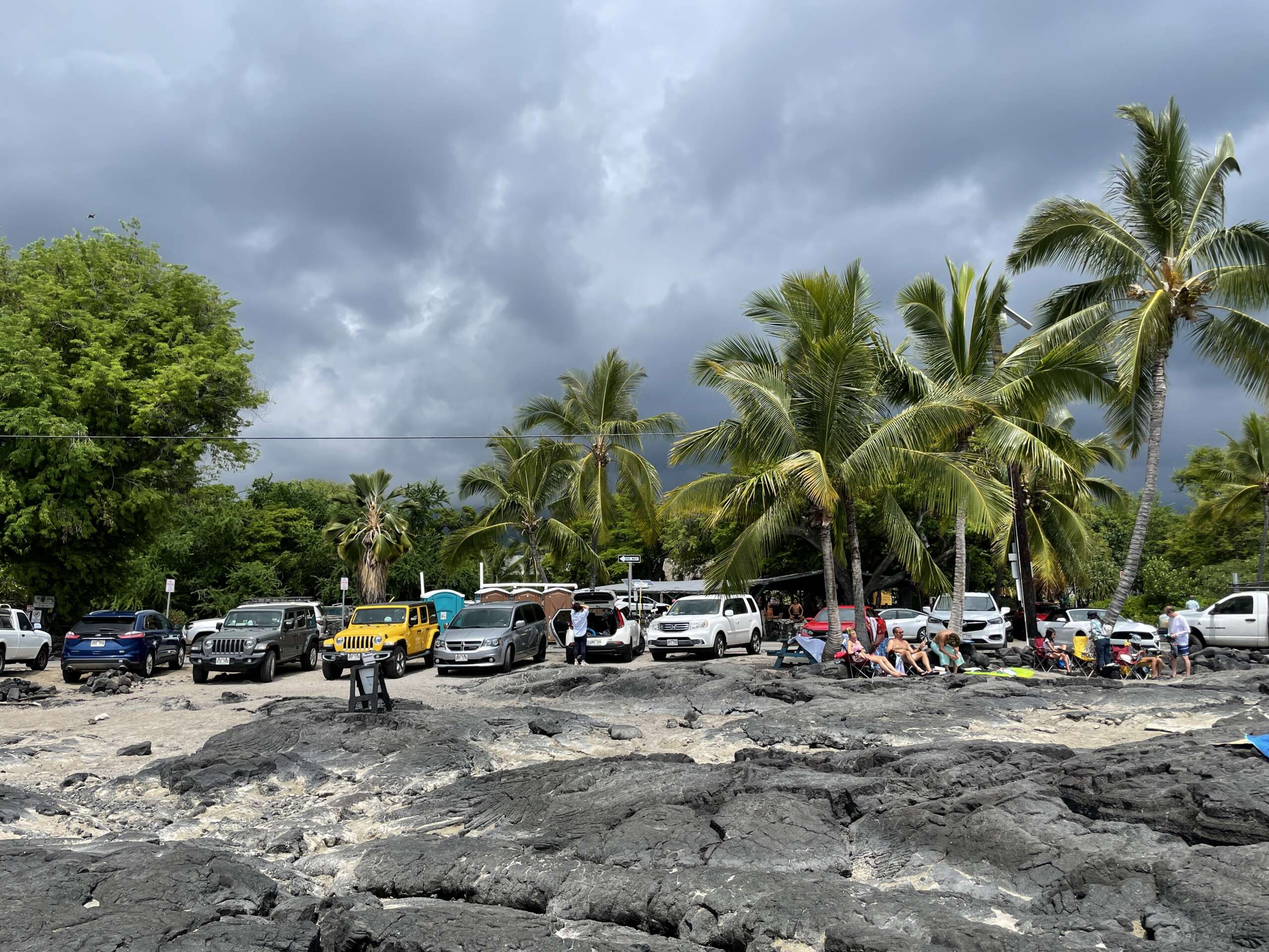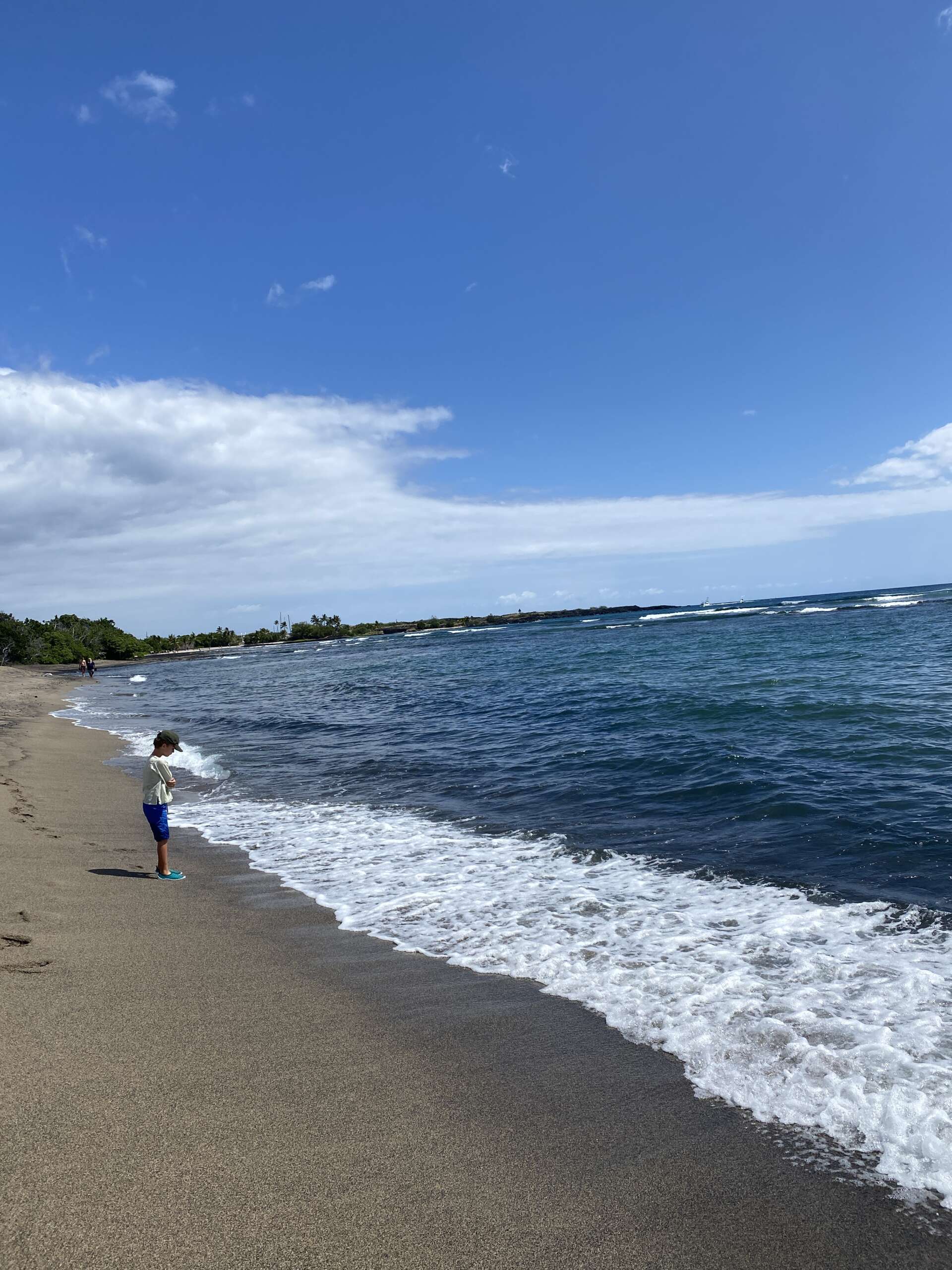 Après un stop déjeuner sans grand intérêt à Kailua-kona (dur dur de trouver des restaus sympas dans le coin quand même), on poursuit la route vers Honokohau beach pour une petite rando en bord de plage qui j’espère devrait nous conduire à voir des tortues.