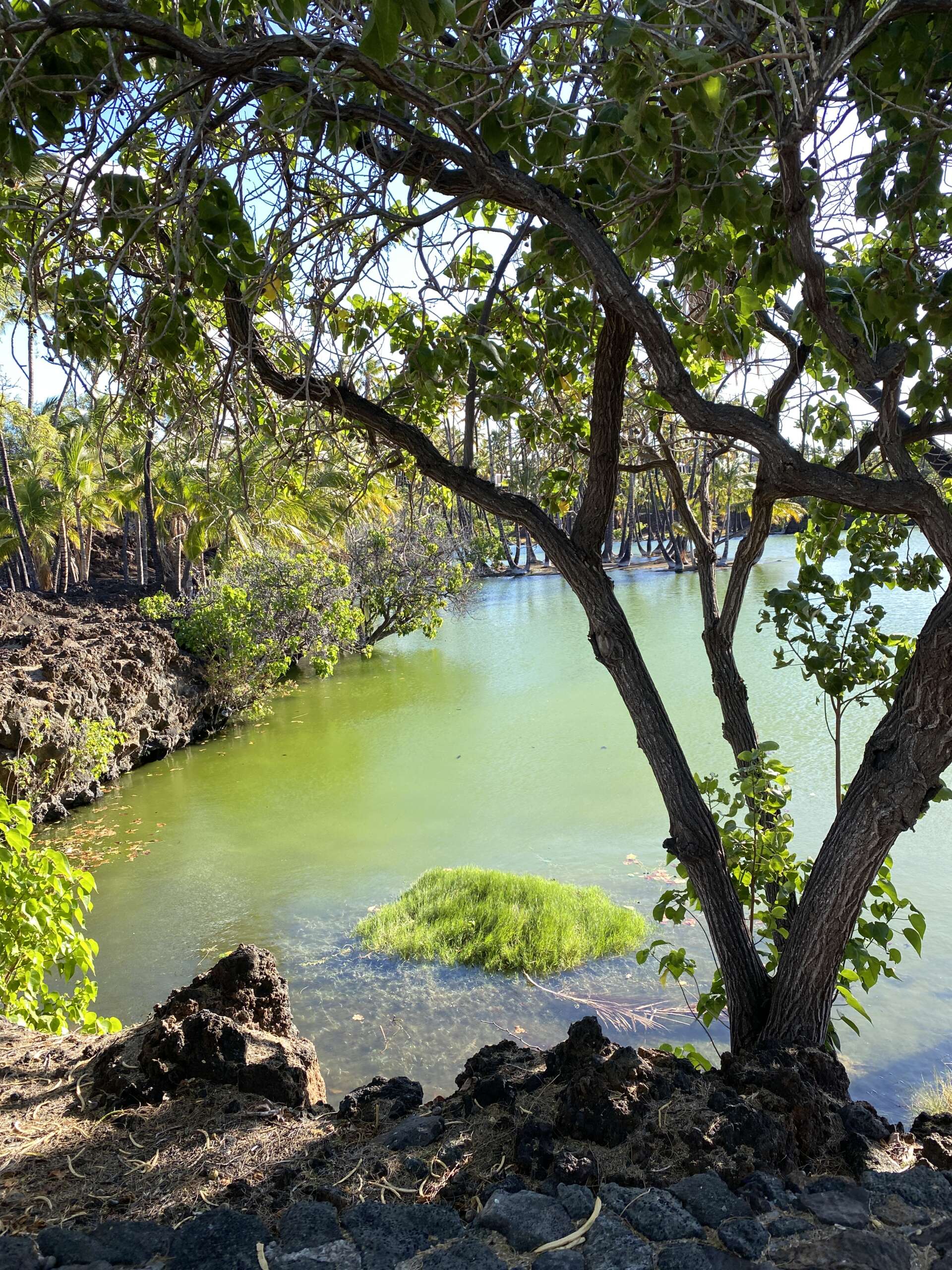 Nous voilà donc au Historical Center de Kalahuipua’a qui n’a d’historique que le nom. Petit aparté. ON ne s’en rend pas compte, mais c’est dur de créer une culture à partir de rien. Nous, si ça n’a pas au moins 500 ans, été détruit et reconstruit dix fois, on ose à peine dire que c’est ancien. Ici, on a traversé le Historical Center pour arriver aux fishponds et on se demande bien ce qu’il y avait d‘historique à part un petit tunnel de lave.