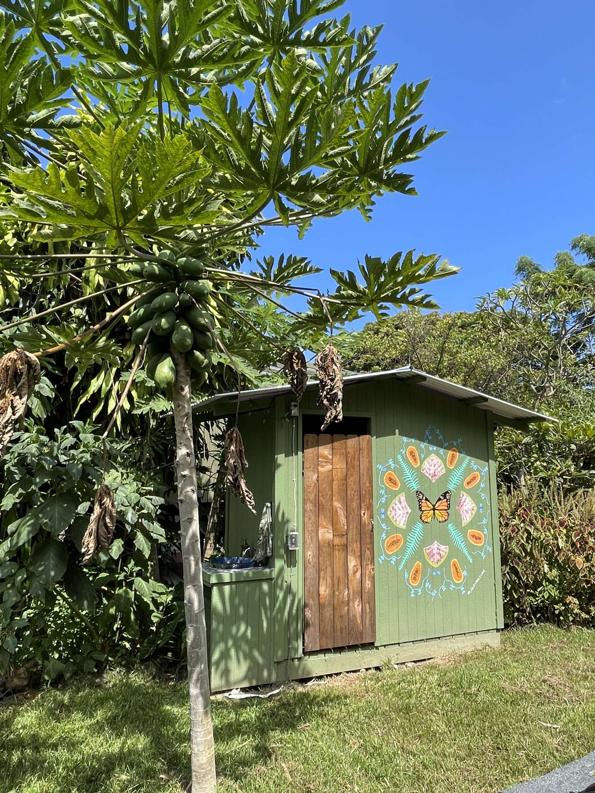 Après avoir fait un dernier tour de notre hébergement insolite et chaleureusement remercié notre hôte en refusant néanmoins les différentes décoctions proposées contre le décalage horaire, le Covid et les maux de ventre à 100 dollars le flacon (babacool mais un peu capitaliste quand même), nous prenons congé de notre hôte, direction la Kohala coast dans l’extrême nord de l’ile.
