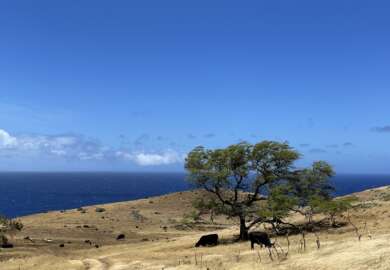 Sur le papier, il ne serait pas déraisonnable vu qu’il est 17h et qu’il nous reste une grosse heure de route pour atteindre la destination du soir de rentrer direct, mais j’avais lu qu’il y avait un truc marrant à faire du côté de Kalahuipa Fishponds. Et comme c’est sur la route, pourquoi s’en priver. On est à 15 000 km de Paris, ce n’est pas certain qu’on revienne ici de sitôt.
