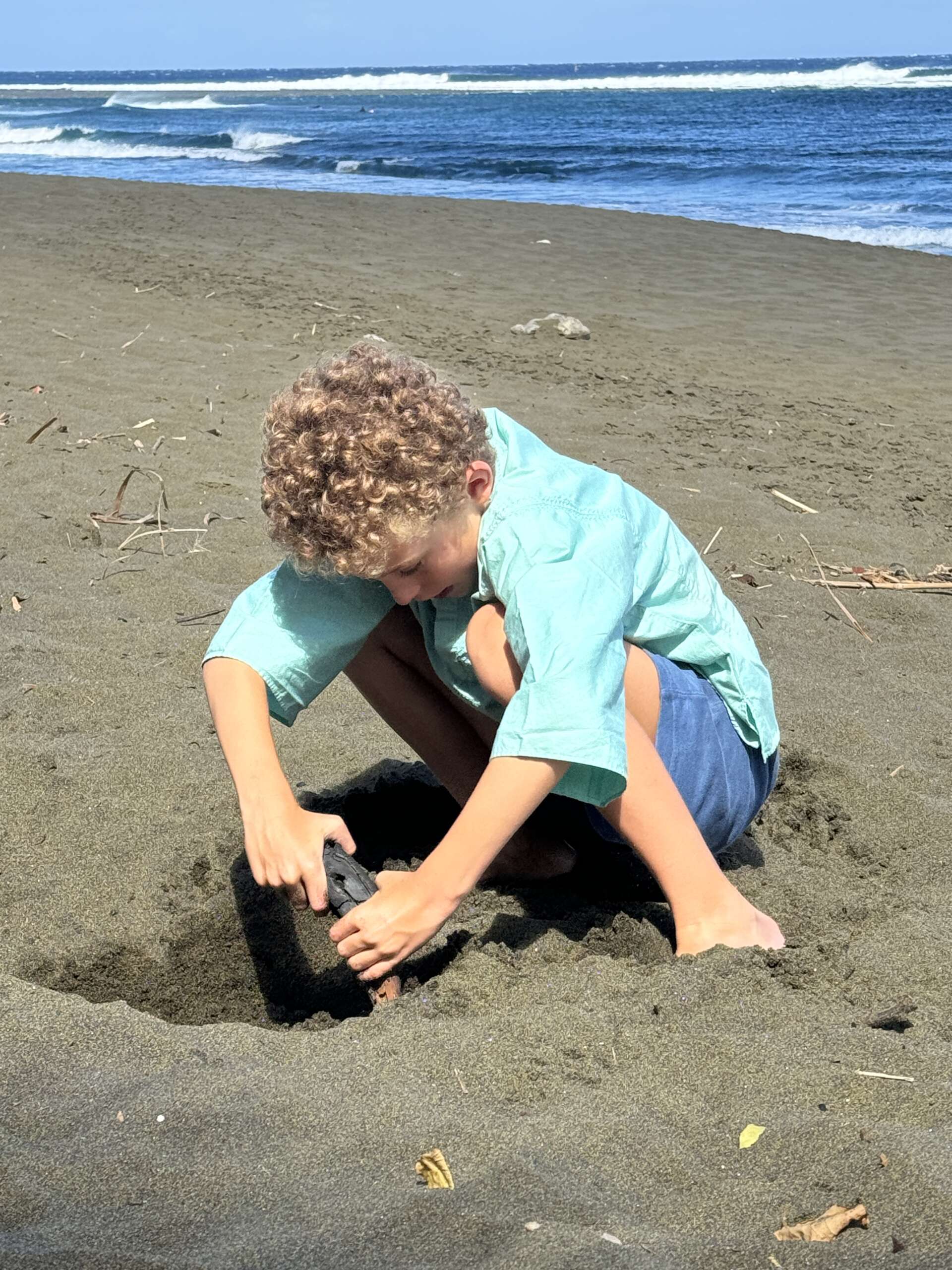 Dans les faits, il va quand même tenir une vingtaine de minutes, histoire de me faire mentir. L’eau n’est pas froide en fait, mais le vent lancinant et les vagues – même dans le lagon – ont raison des parties qui restent émergées, et après avoir vu pas mal de poissons dont un poisson coffre qu’on n’avait jamais vu et un énorme je ne sais pas quoi, Noah frissonne. On est bien contents d’être juste devant la maison. Direction la douche chaude.