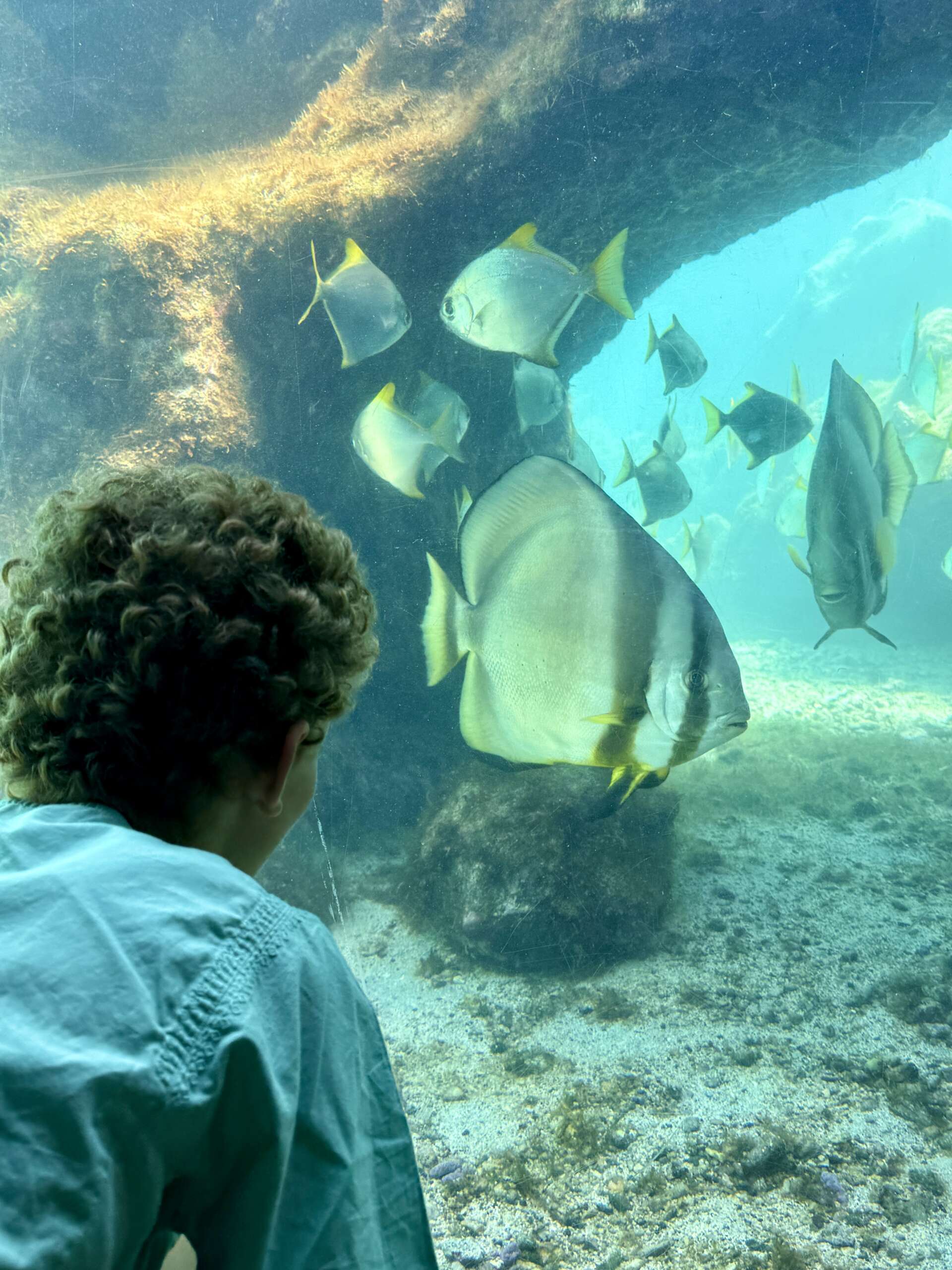 Cela le fait aussi patienter car depuis ce matin il ne rêve que de faire du snorkeling et vu le vent et la peau qu’il a sur les os, il est évident qu’il va geler en 5 minutes chrono si on suit vraiment son idée de départ. D’ailleurs il n’y a presque personne dans l’eau, à part 2 péquins masqués, ce que me fera remarquer Noah pour justifier qu’on aille quand même voir les poissons. Lui voit qu’il y en a quand même deux, nous qu’il n’y en a que deux. Le verre à moitié vide ou à moitié plein. Pas étonnant que personne ne se comprenne sur cette planète.