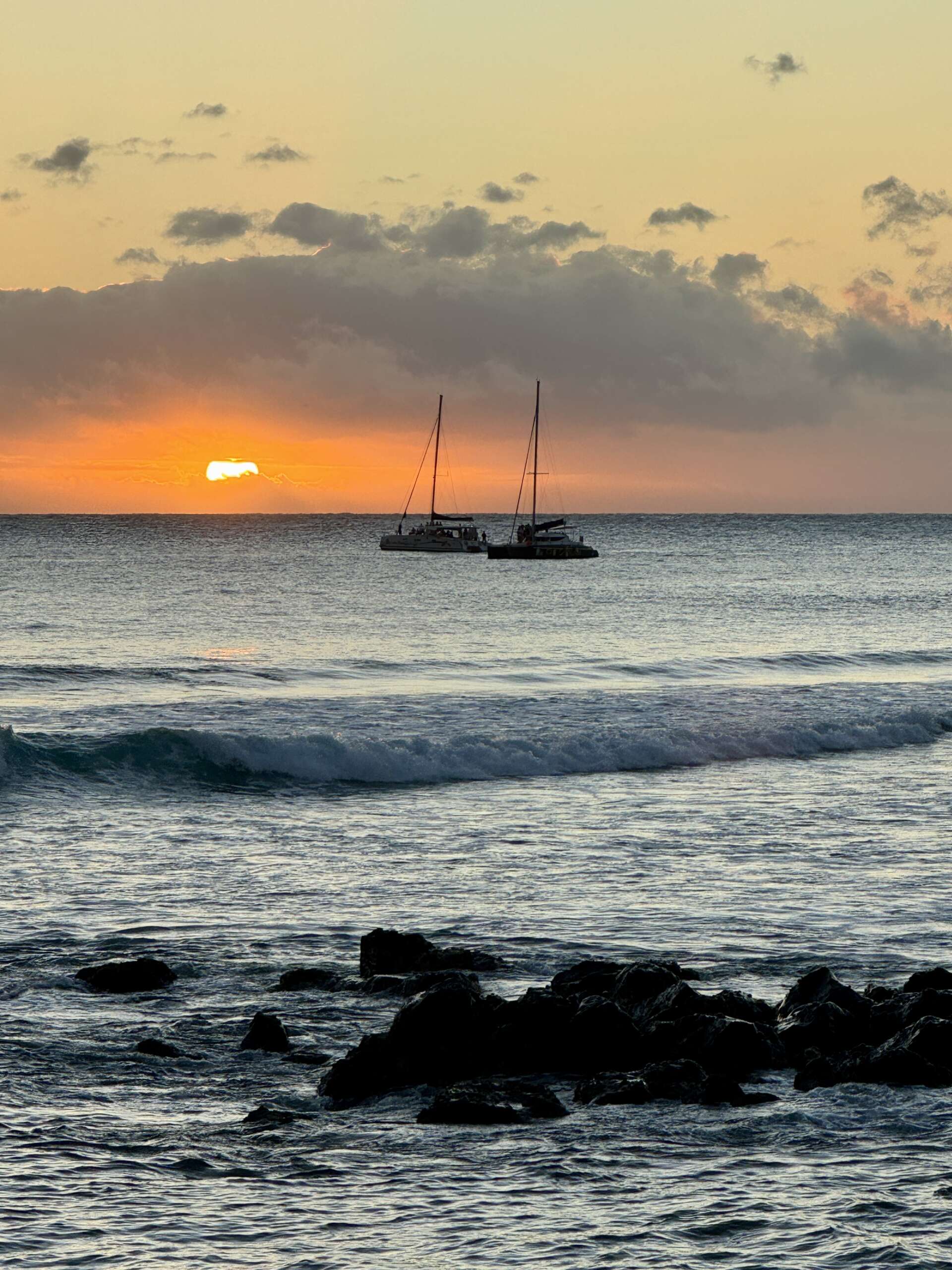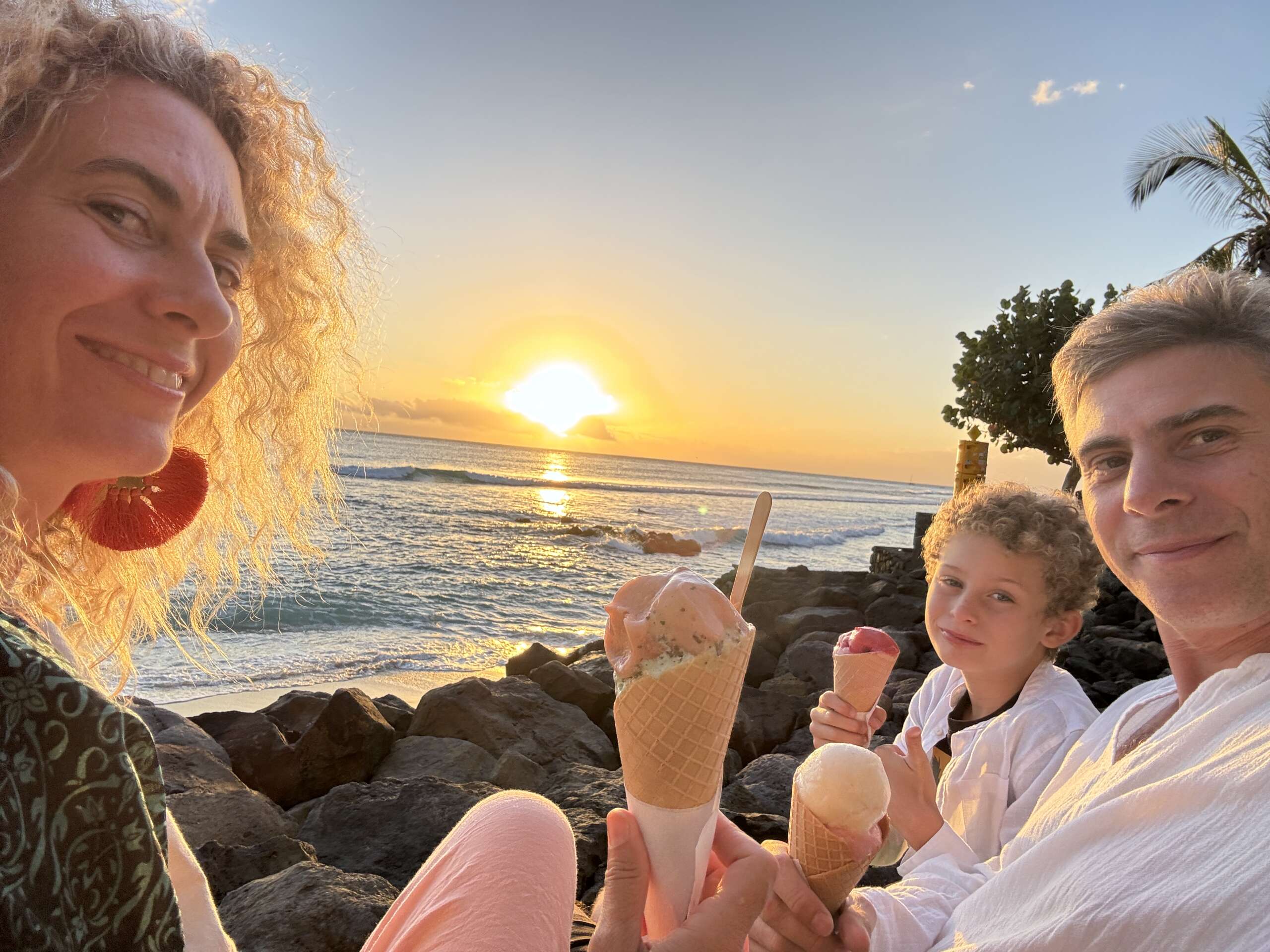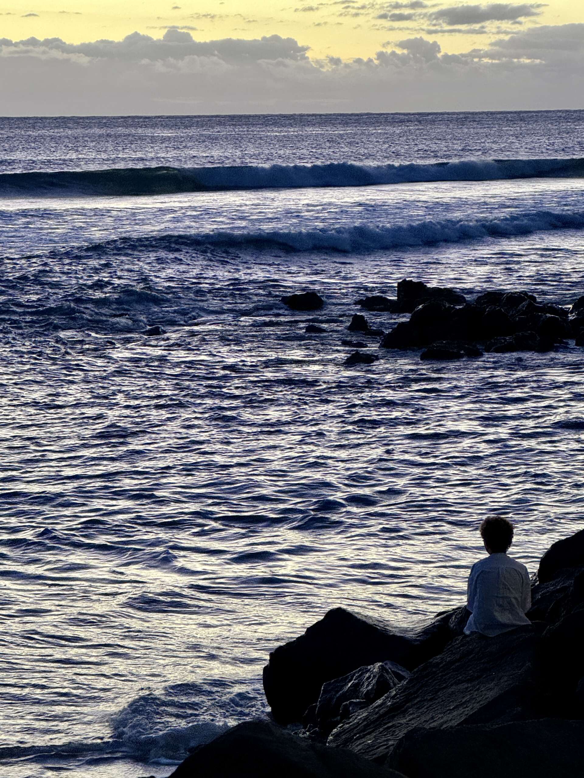 Fin de journée glace au port de Saint gilles à regarder un beau coucher de soleil qu’a accompagné l’arrêt complet de l’épisode venteux -penser à rajouter au cours de climatologie le coucher de soleil qui fait tomber le vent – . On s’est clairement empiffrés de glace au-delà du raisonnable et notre petit Noah a eu son moment contemplatif seul, à l’écart, sur un rocher, à regarder les vagues déferler comme il aime à le faire depuis qu’il est tout petit.