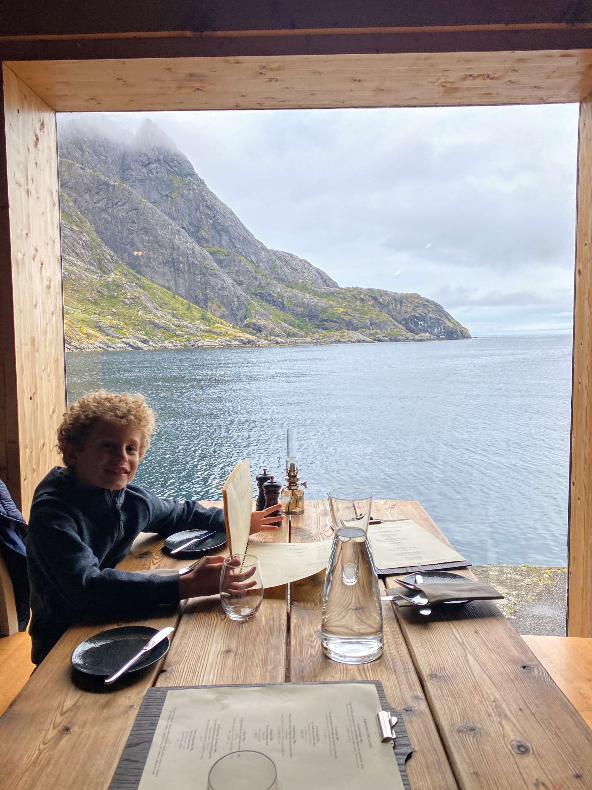 Vers 12h30, Noah a faim. On sait qu’il ne mangera rien comme d’habitude, mais le restau Karoline qui dispose d’une super vue sur le fjord nous tend les bras, alors on s’installe. Et là ,Virginie et Noah voient de la fenêtre un speed boat qui part avec seulement 2 personnes à son bord. Et les revoila tous les deux repartis sur le fait qu’on devrait faire du speedboat cet après-midi. Aucune envie de rester sur l’échec d’hier. On fini donc de manger le plat et je pars à la pêche aux infos pendant que Virginie commande un dessert.