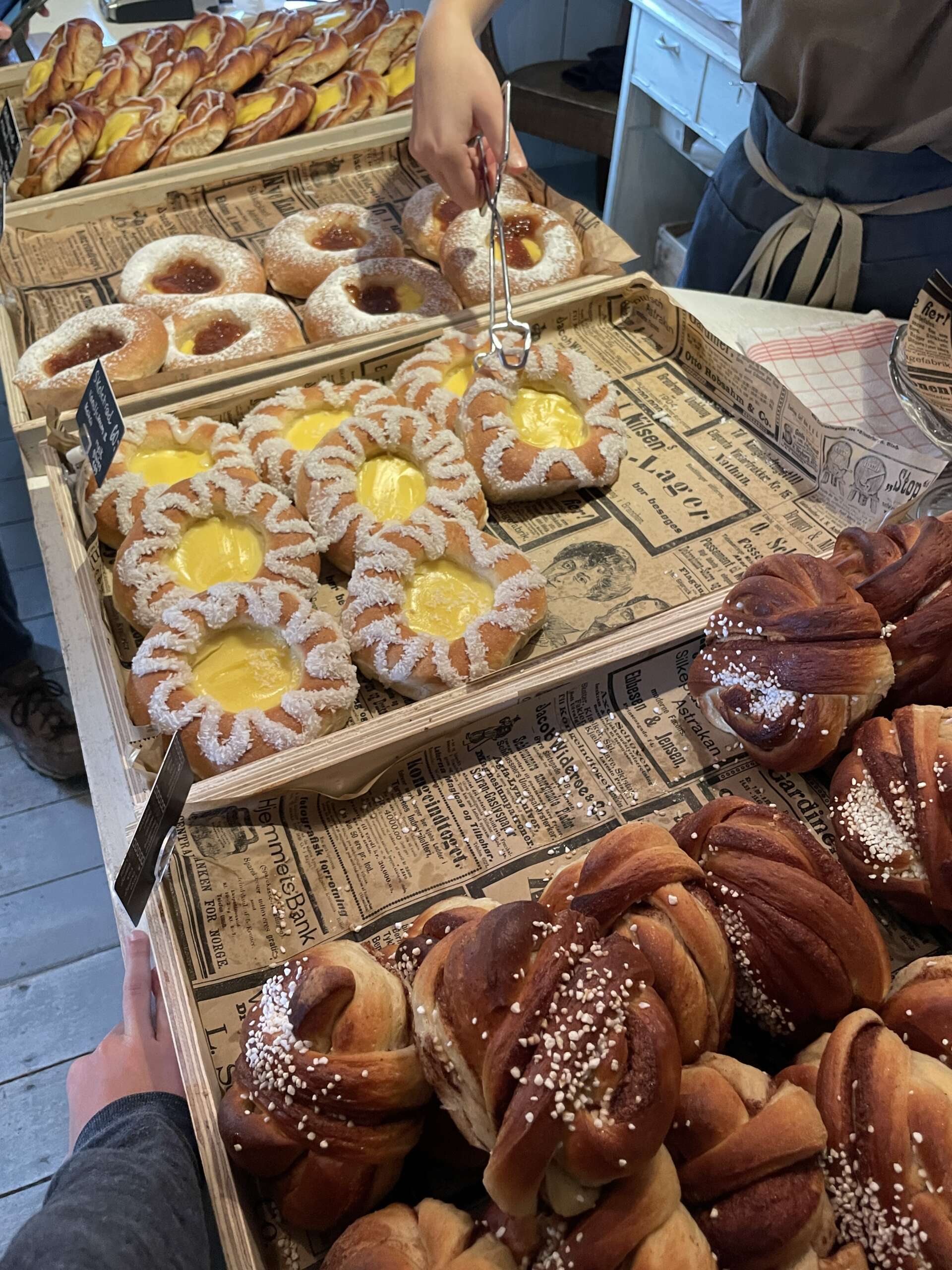 On est ici dans un village « musée », mais ça a beaucoup de charme. On s’arrête à la bakery pour grignoter la spécialité locale, une sorte de beignet plein de crème hautement diététique comme vous vous en doutez (heureusement ils ont fait une version sans cannelle ce qui permet aussi à Virginie d’apprécier le moment et de devenir par la suite carrément addict).