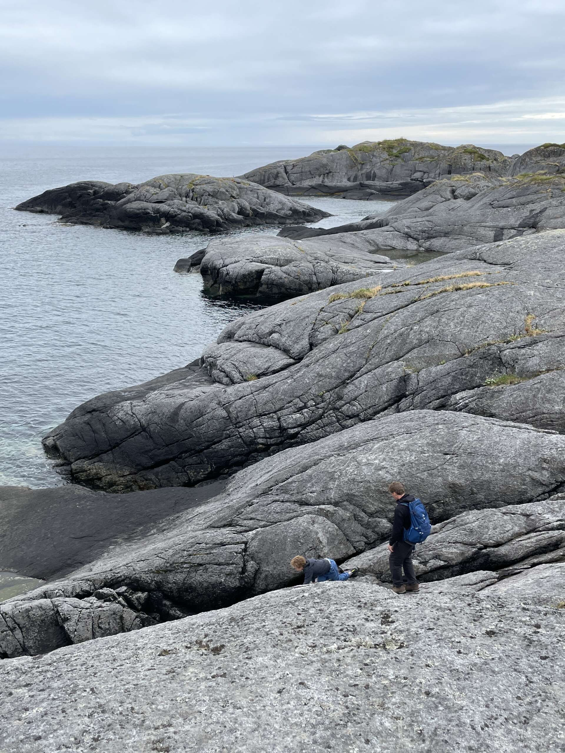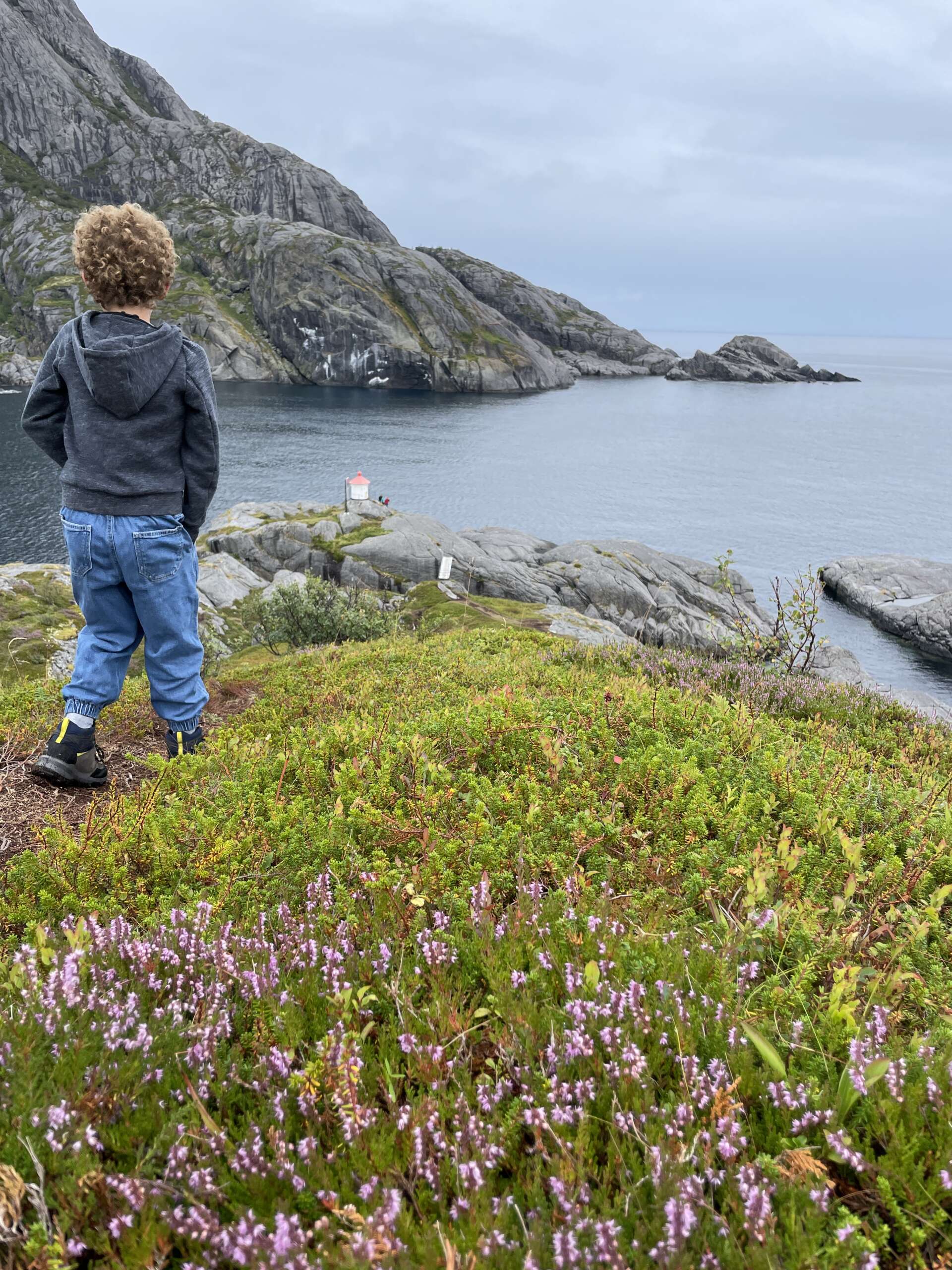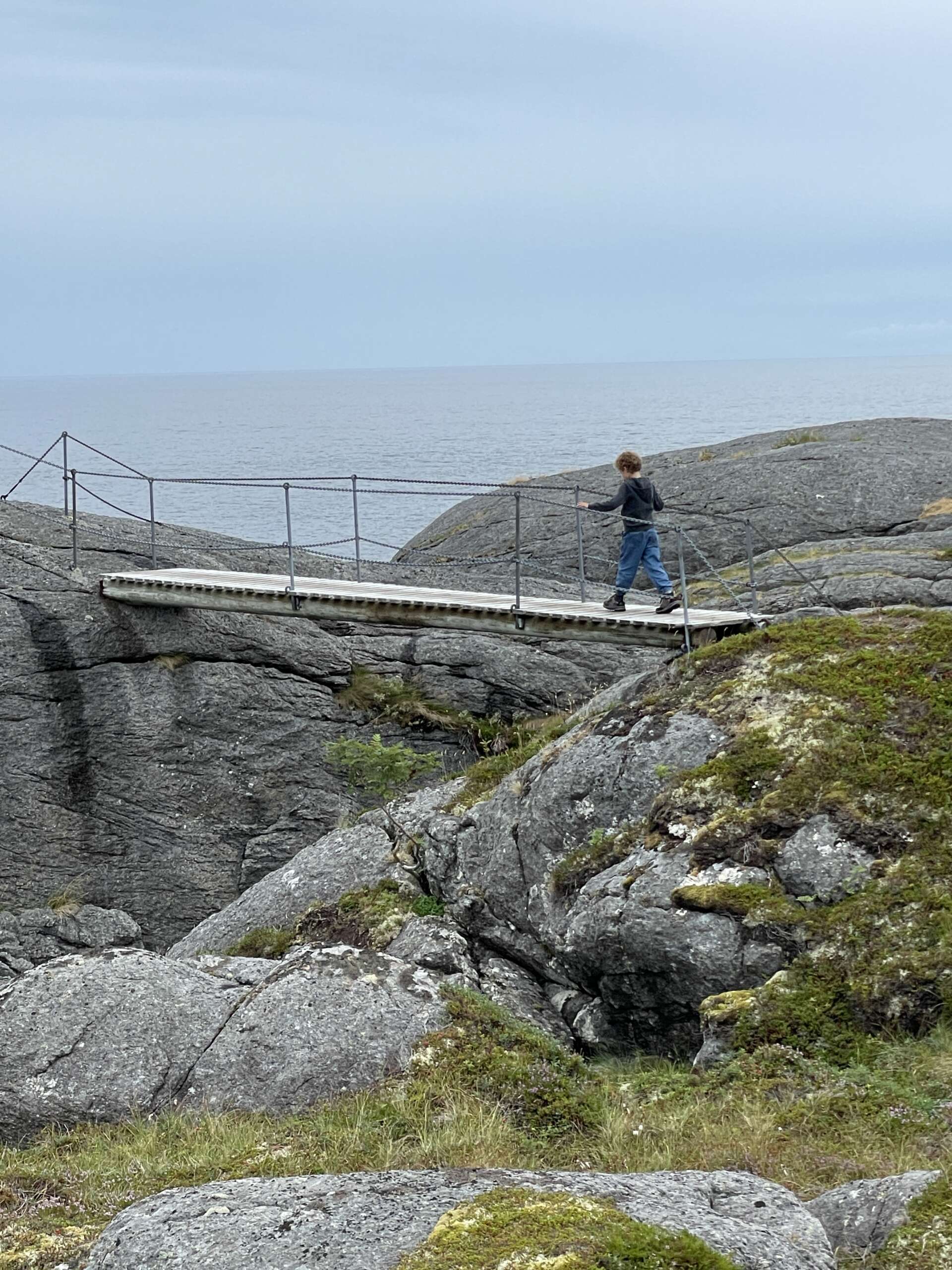 On part donc se balader dans ce paysage de bout du monde composé d’escarpements rocheux, de mousses et graminées en tout genre pendant près de 2h. On ira voir un petit phare en traversant un petit pont, puis Noah voudra aller de rochers en rochers jusqu’au bord de l’eau, puis partir à l’aventure parce que « c’est sa nature d’être un aventurier ». Si vous suivez, en ce moment sa nature lui dicte beaucoup de choses, mais rien du genre dormir dans son lit ou manger à table. C’est étonnant cette « nature ». 😉