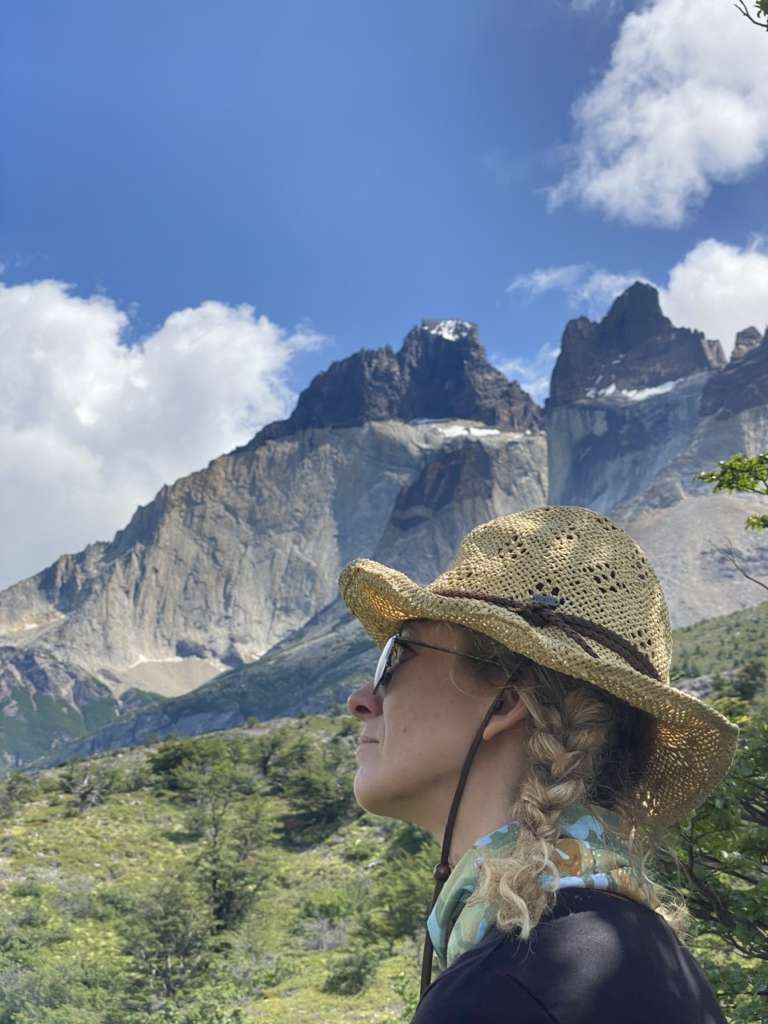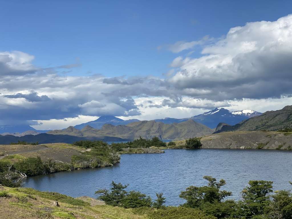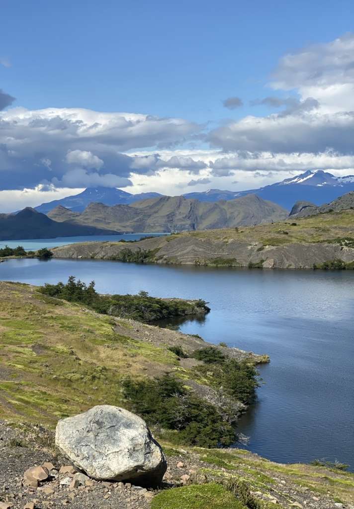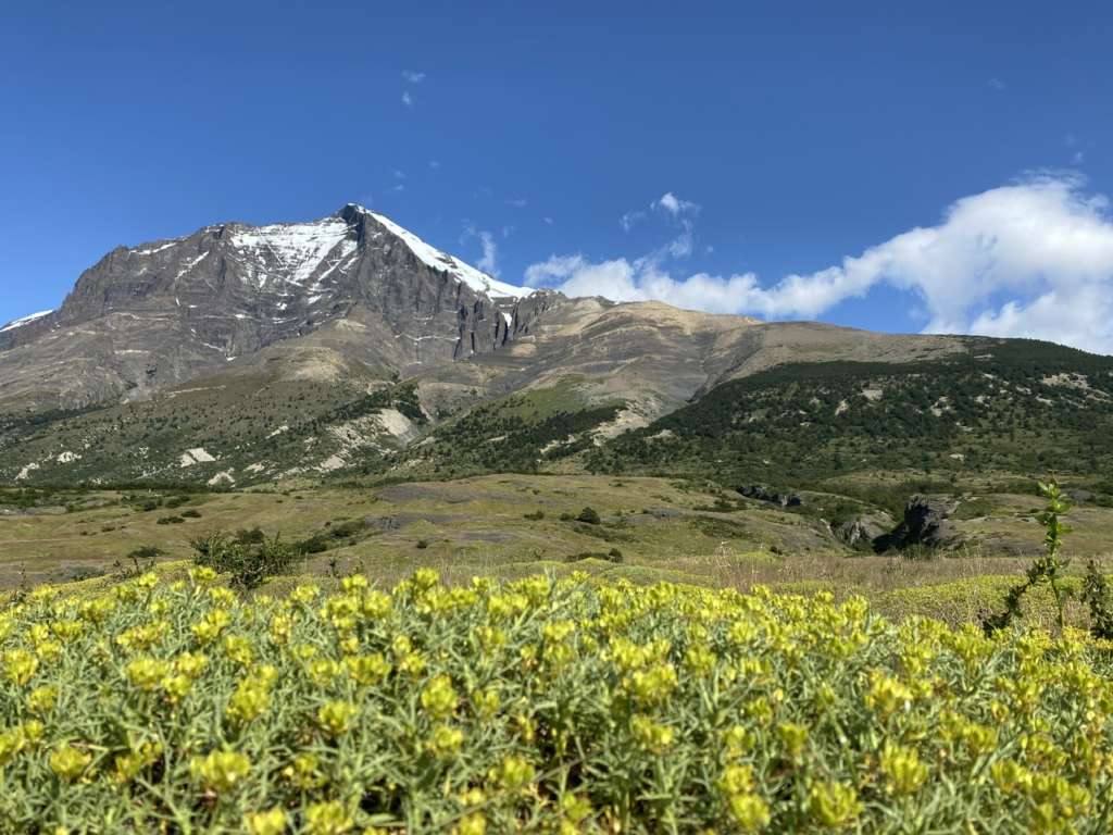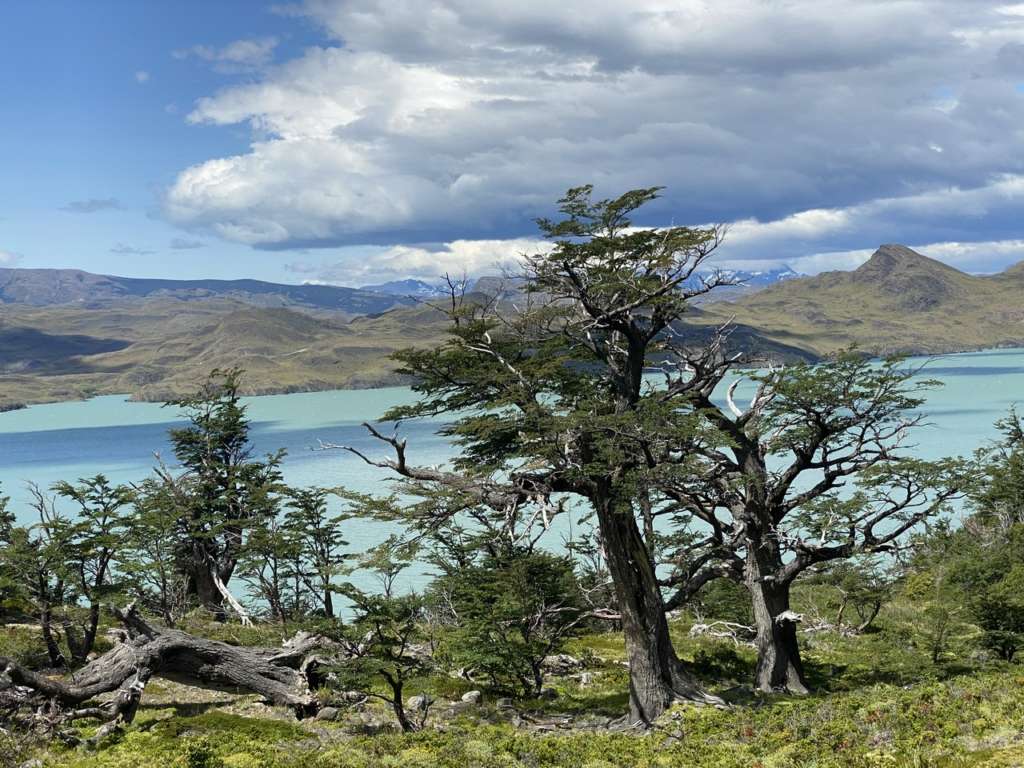 Et on n’est pas déçu. Très agréable et variée, on commence par longer le massif Paine d’un côté, le lac Nordenskjöld de l’autre (ah ben zut, on est retourné en Islande avec un nom pareil ?). On alterne entre la traversée de ponts suspendus, puis des plaines avec des mousses vert tendre, des forêts, des zones arides. On cottoie des fleurs de feu si typiques de la patagonie. Avec Noah on se goinfre de baies de Chura (baies minuscules qui ressemblent à des toutes petites pommes de moins d‘un centimètre et qui ont un vrai goût de pomme), on cueille des champignons. La rando est longue, mais pas difficile.