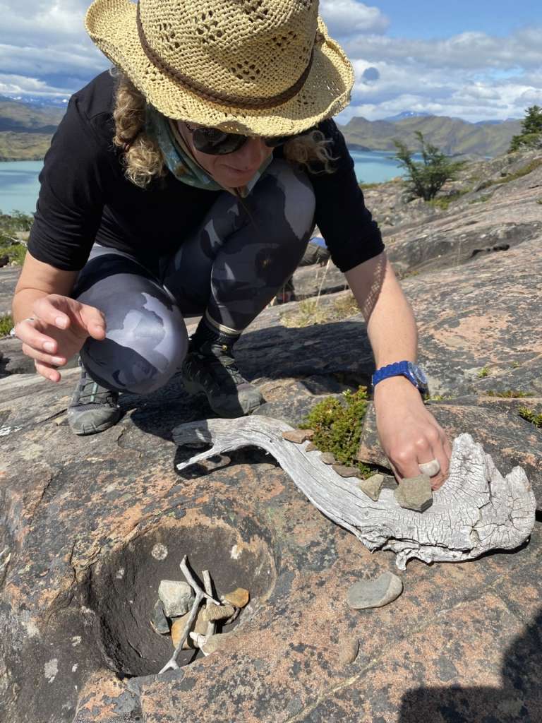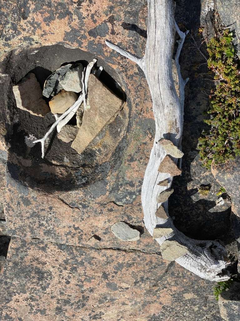 A la faveur d’une petite halte sur des rochers surplombants les lacs. Noah part en quête de trésors et comme à son habitude se lance dans une composition minérale dont il a le secret.