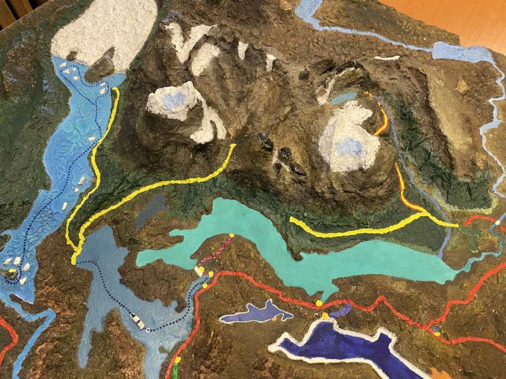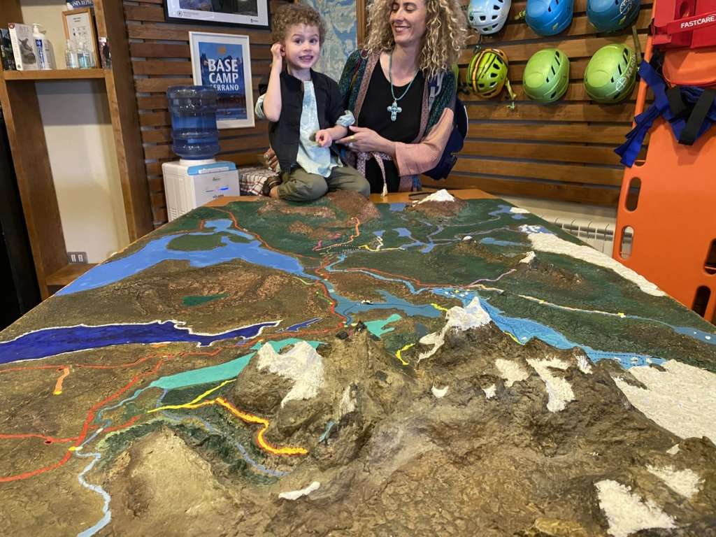Le W, on en parle depuis quelques billets mais sans vous montrer ce que c’est vraiment. Donc en image le massif et la rando. Voila c’est fait. W comme la forme que dessine le parcours et qui permet de voir en plusieurs jours, le glacier Grey, la French Valley, les Cuernos et les Torre. Grands seigneurs on vous met même la version maquette en 3D qu’ils ont fait au briefing des ballades pour que vous puissiez mieux vous en rendre compte.