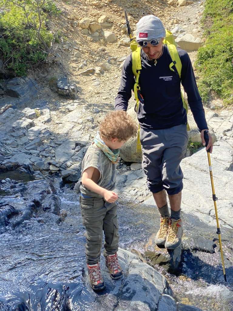 Et ca remarche, il repart de plus belle et refait quelques kilomètres à pied sous le regard tantôt ébahi, tantôt attendri des randonneurs qu’on croise et qui, avouons-le, se demandent bien ce que fiche un petit garçon de 3 ans à marcher dans cet endroit.