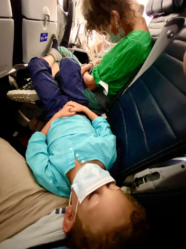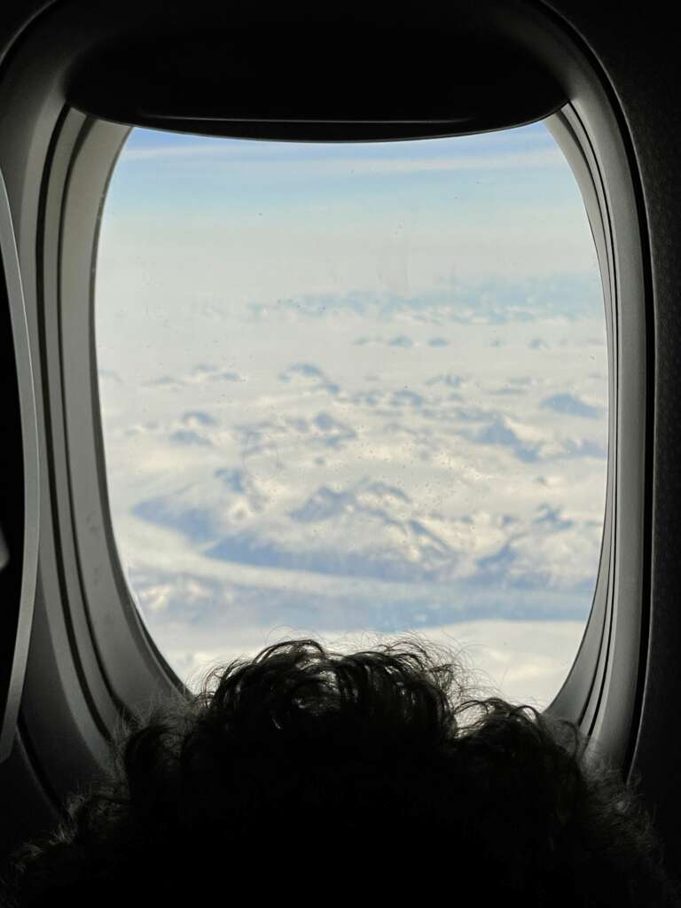Alors oui, c’est vrai, il vient de passer 5h devant l’ipad, je ne vais pas dire le contraire, et après 3 ans passé dans une école Montessori d’aucun dirait qu’on n’a rien compris, mais du coup les 11h de vol défilent tranquille. Mais il a quand même levé la tête pour voir le Groenland quand on est passé juste au-dessus et j’ai réussi à lui retirer l’ipad des mains (batterie passée de 100% à 24% quand même) après, ce qui lui a permis de sombrer en 30 secondes dans les bras de Virginie.