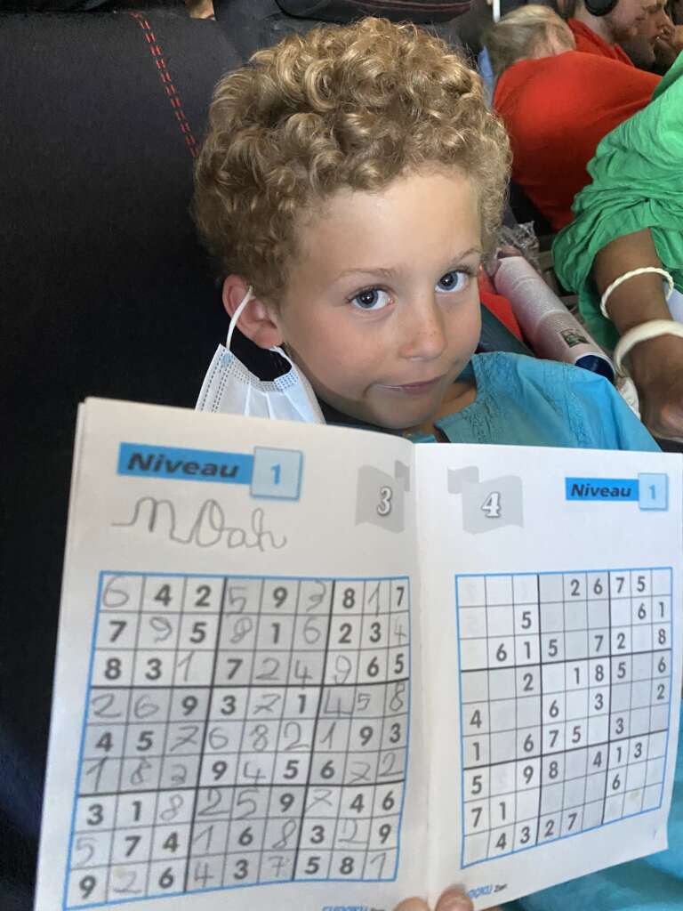 A noter : premier Sudoku adulte de Noah réalisé à 6 ans au-dessus du Pacifique. Il va pouvoir aider Virginie qui a elle beaucoup souffert sur sa grille.