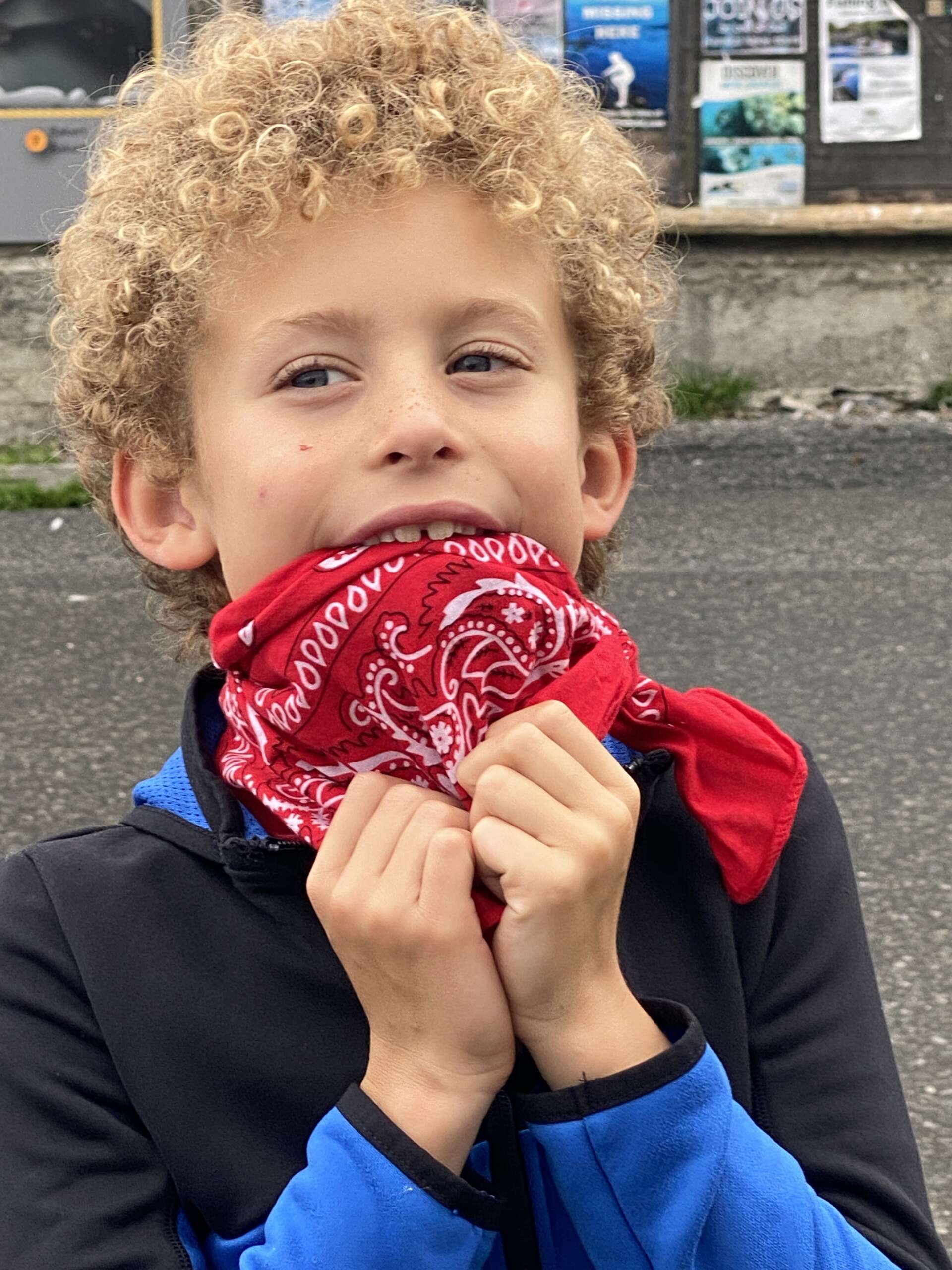 Une petite entorse à la moralité en rentrant la date de naissance de Noah au 18/02/2015 au lieu de 2016 (l’erreur est humaine) lorsqu’on me tend le formulaire pour s’enregistrer – voila là il a 8 ans comme cela –  et on enfile les tenues de survie. Noah n’a même pas besoin de prendre la plus petite. Il grandit le bonhomme ! Côté taille on est bons, alors c’est parti !
