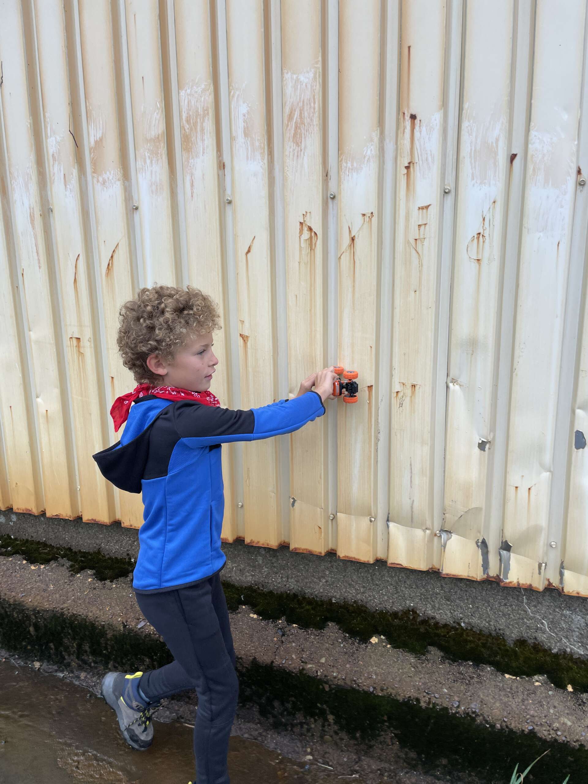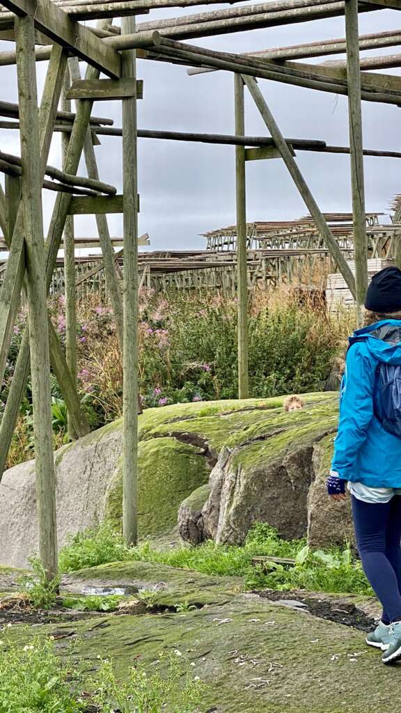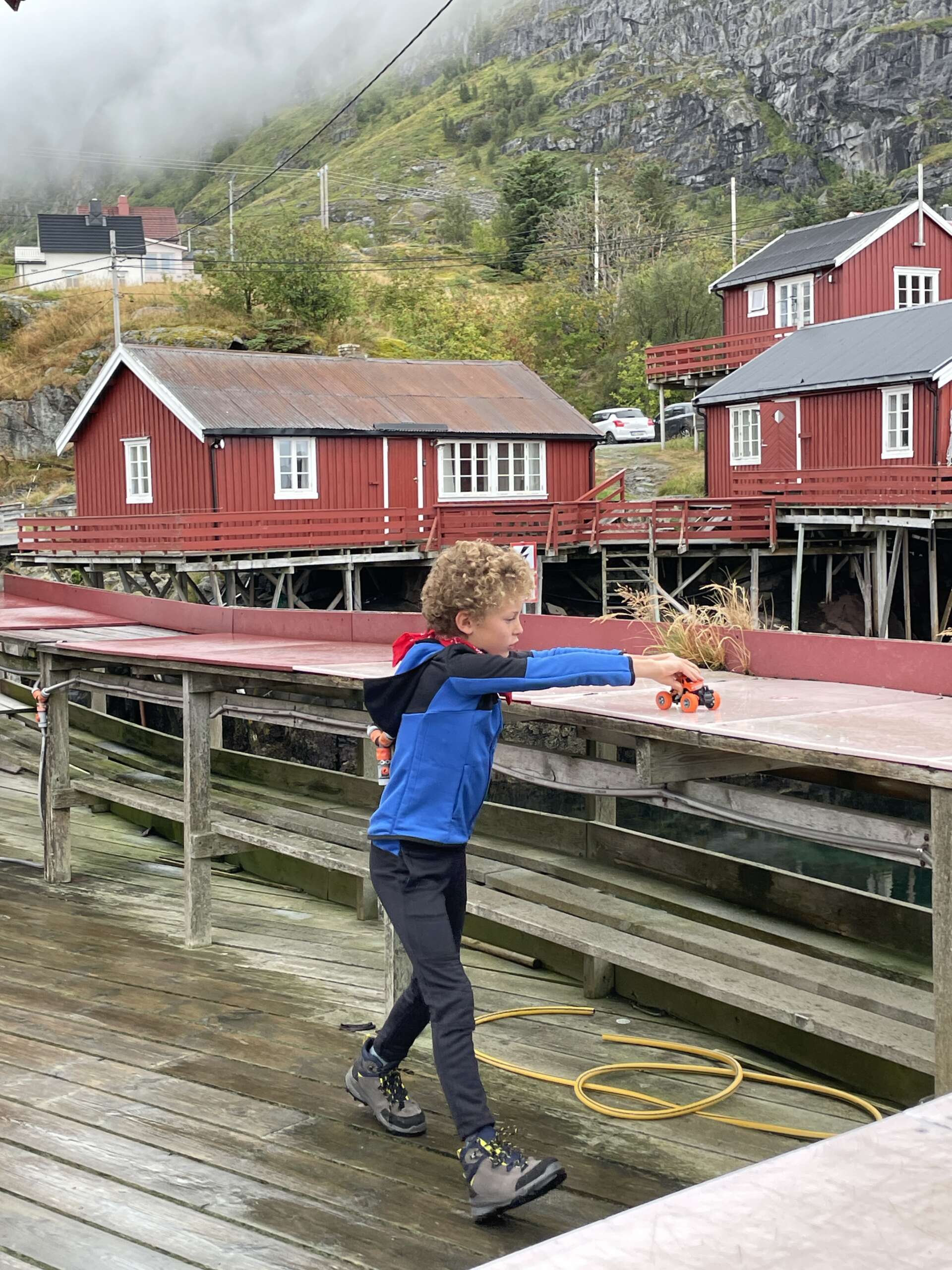 On fait fissa nos affaires pour quitter notre logement d’une nuit, et on laisse tout dans la voiture, le temps de parcourir le village de A qui est particulièrement mignonnet. Noah a pris son quad, et le fait rouler sur les rambardes des rorburer, la tôle ondulée des bâtiments, le sol de préférence quand une flaque d’eau est à portée ou le rebord de la jetée.