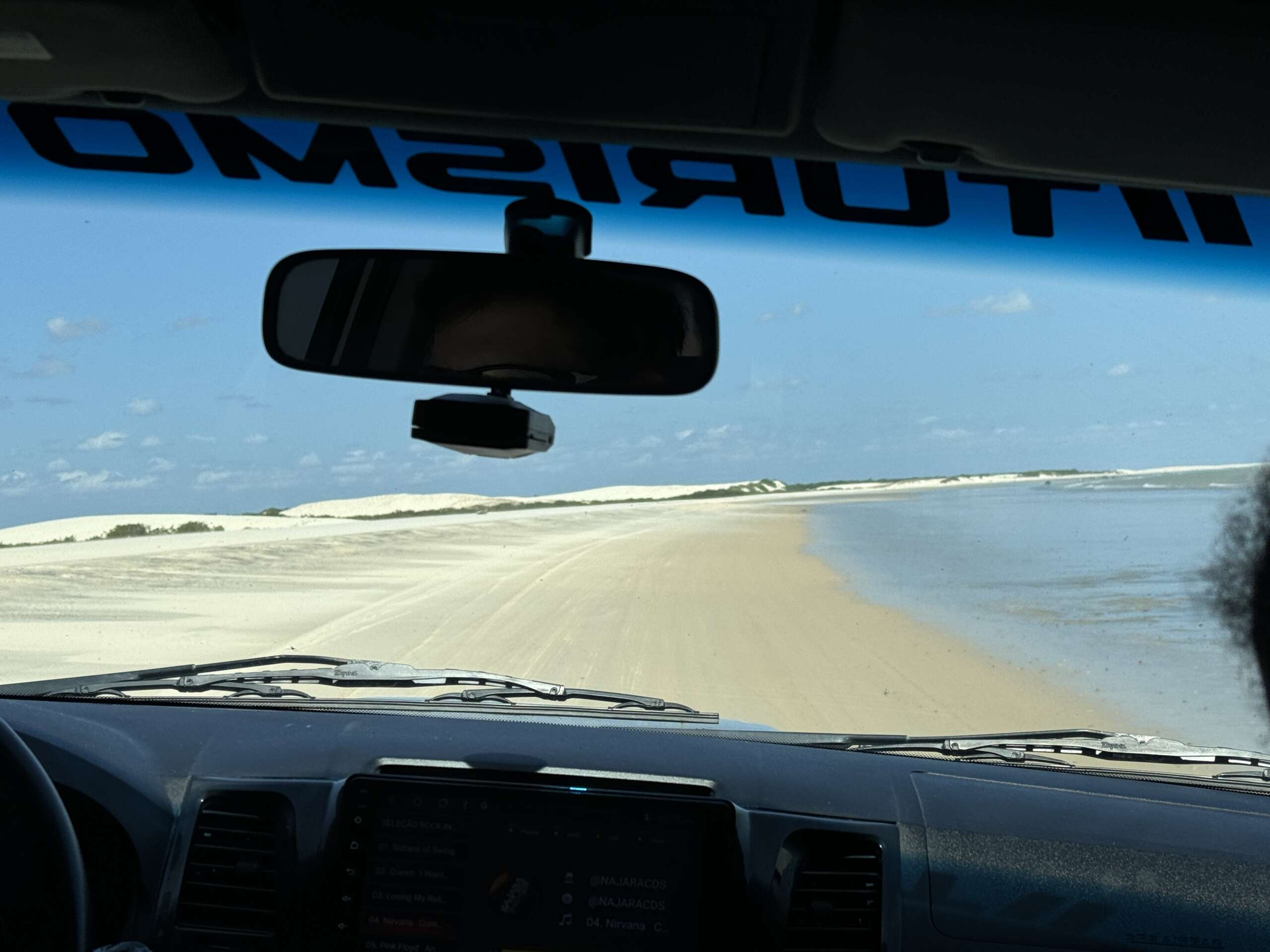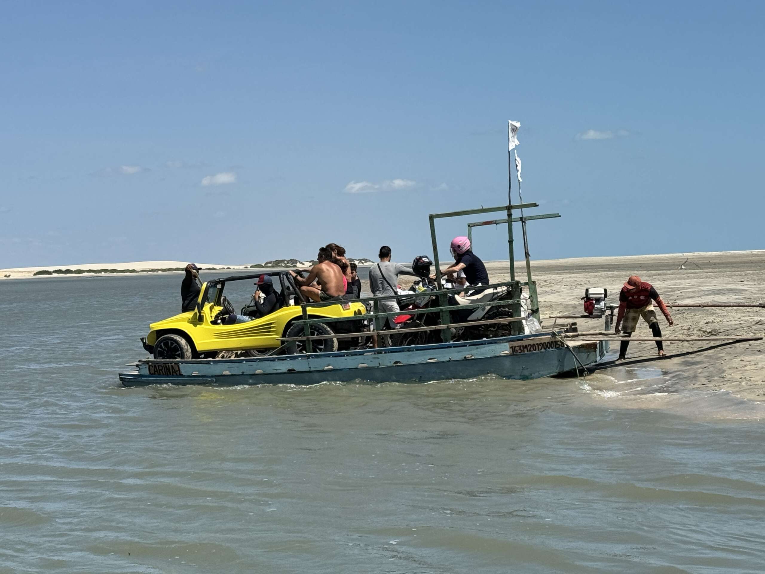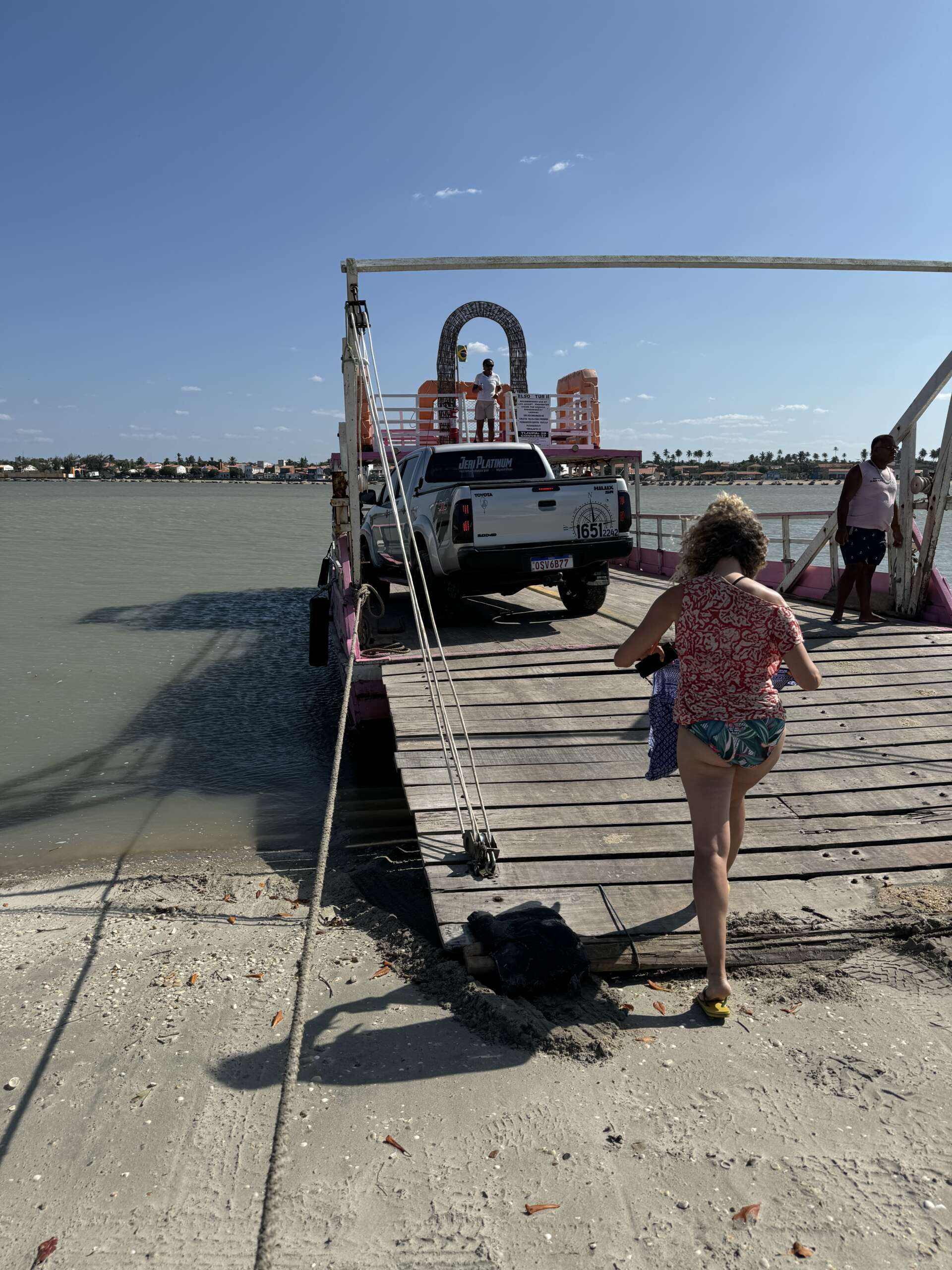 Pas tant le temps de traîner que ça d’ailleurs, car Barra Grande est encore à près de 2h de route. Notre chauffeur repart en trombes, et d’ailleurs, un peu avant d‘atteindre le bac à Camocin pour traverser, on va littéralement décoller sur un passage de dunes. Noah à ce moment-là avait piqué du nez. Malgré le fait qu’on ait décollé de nos sièges de 40 bons centimètres… Noah ne s’est même pas réveillé.