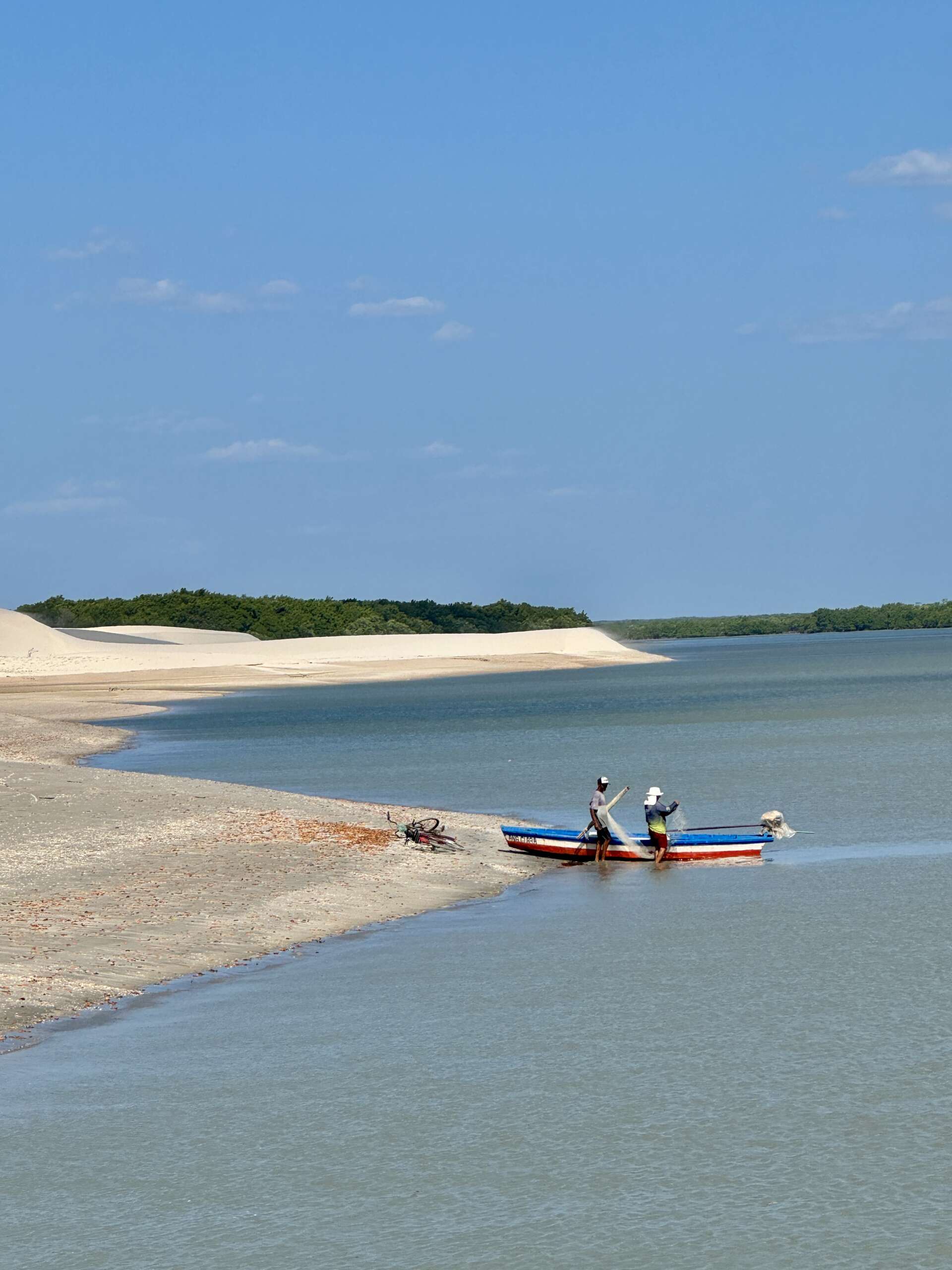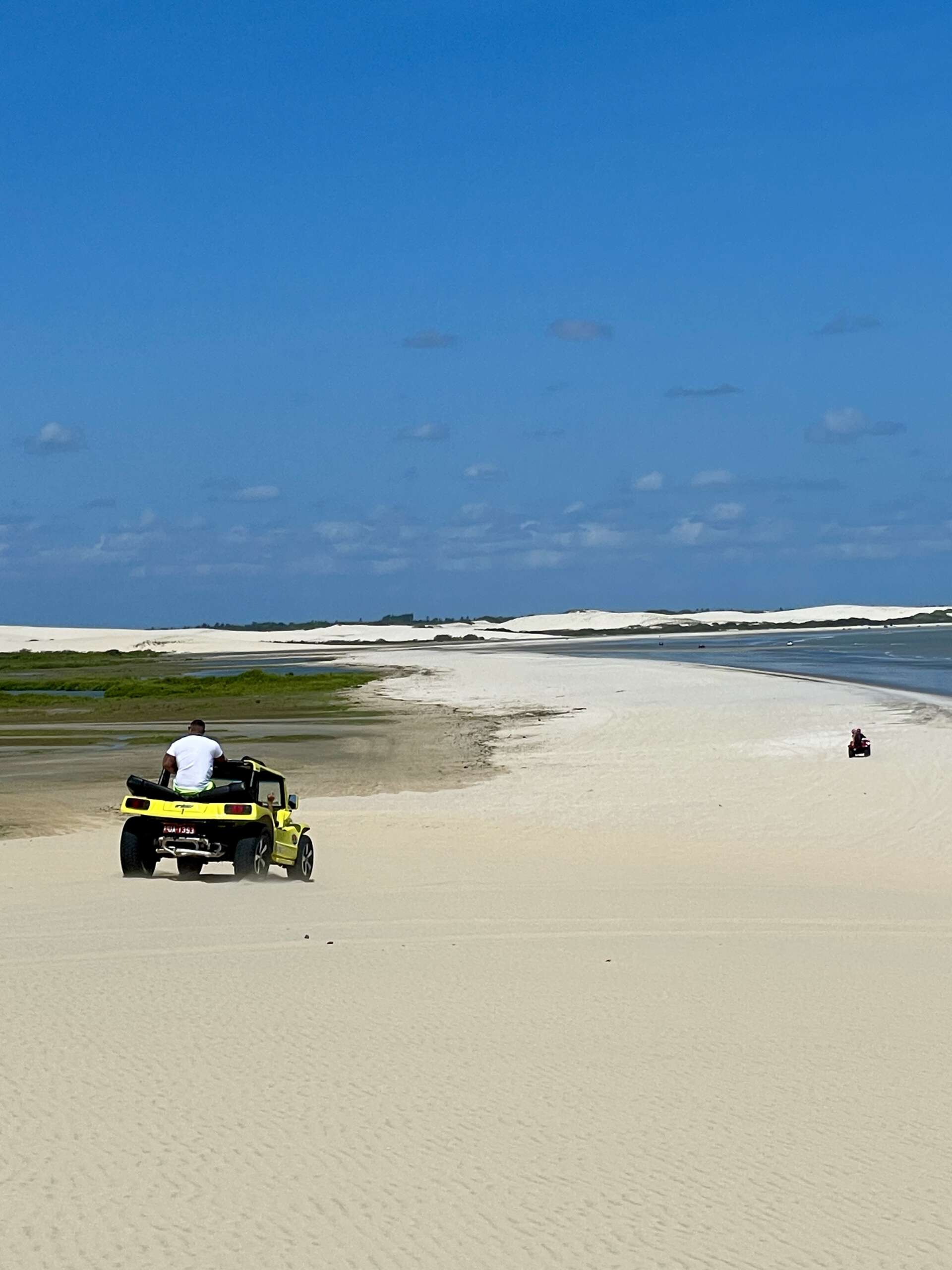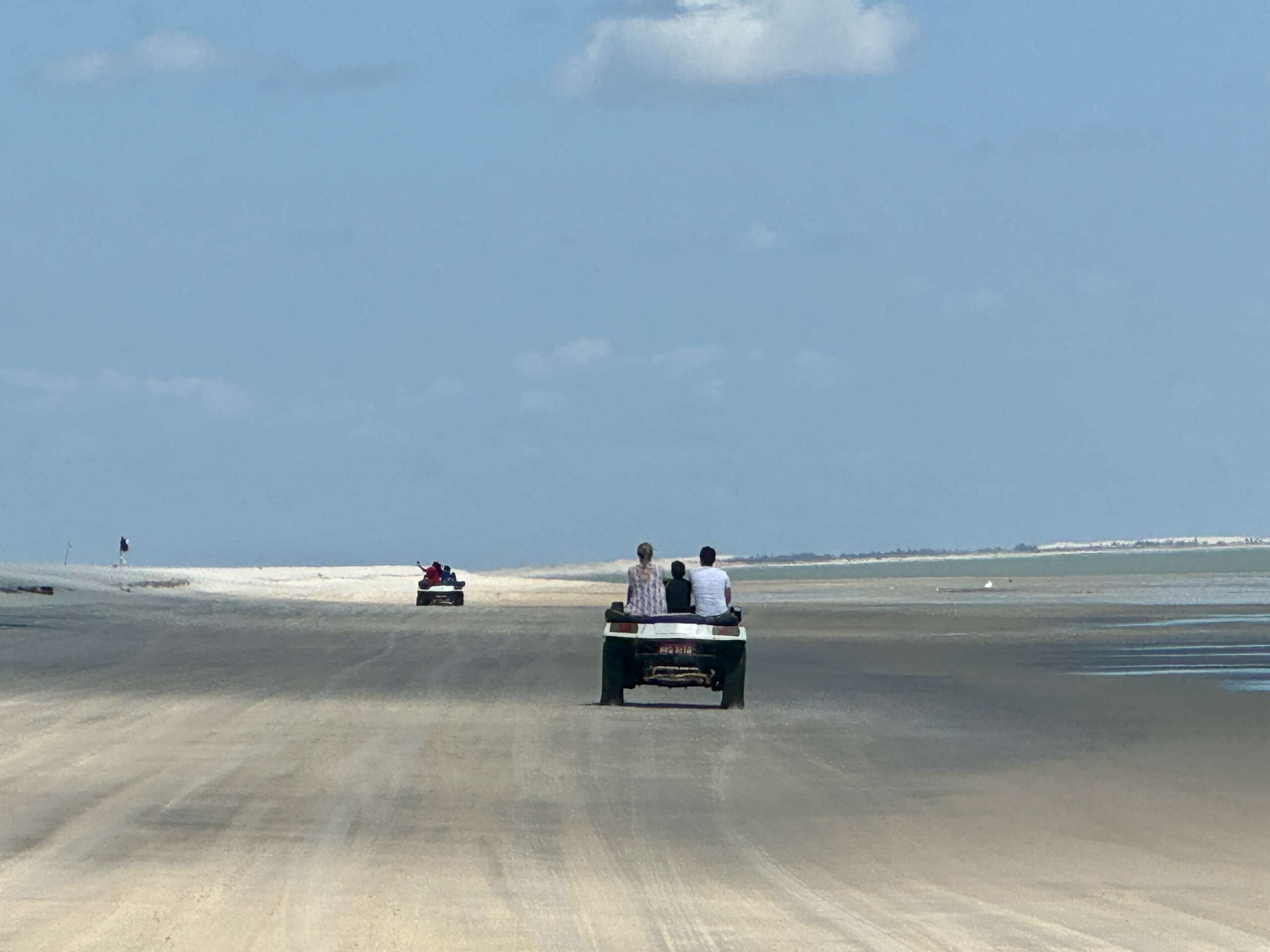 Pas tant le temps de traîner que ça d’ailleurs, car Barra Grande est encore à près de 2h de route. Notre chauffeur repart en trombes, et d’ailleurs, un peu avant d‘atteindre le bac à Camocin pour traverser, on va littéralement décoller sur un passage de dunes. Noah à ce moment-là avait piqué du nez. Malgré le fait qu’on ait décollé de nos sièges de 40 bons centimètres… Noah ne s’est même pas réveillé.