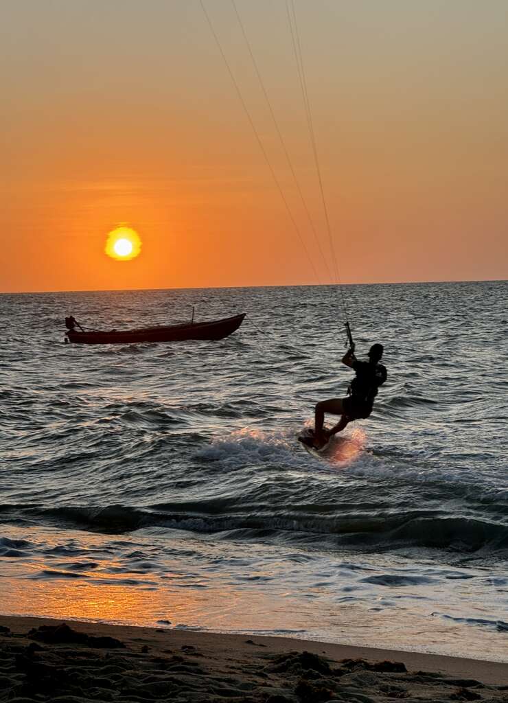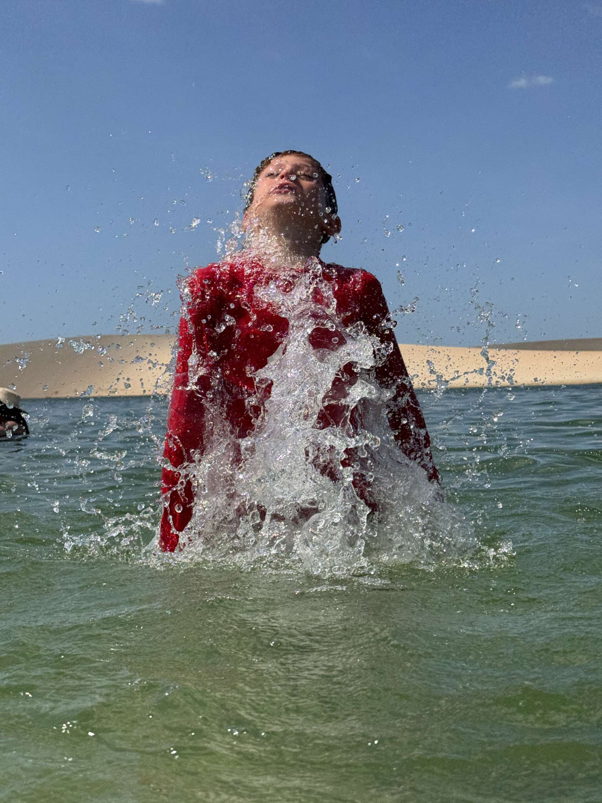 Passé Camocin, le reste de la route a moins d’intérêt. On retrouve l’asphalte mais du coup c’est plus court. Arrivés à Barra Grande à 16h on aura le temps d’aller faire un plouf dans l’eau en contemplant les dizaines de kitesurfeur sur cette plage réputée pour cette pratique sportive. Noah se roulera tellement dans les vagues que lorsqu’il voudra aller ensuite à la piscine, on lui sortira 2 kg de sable de son maillot !