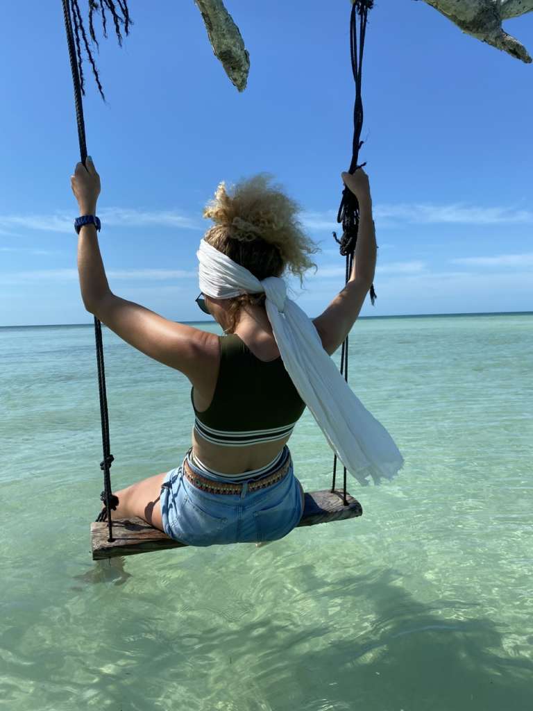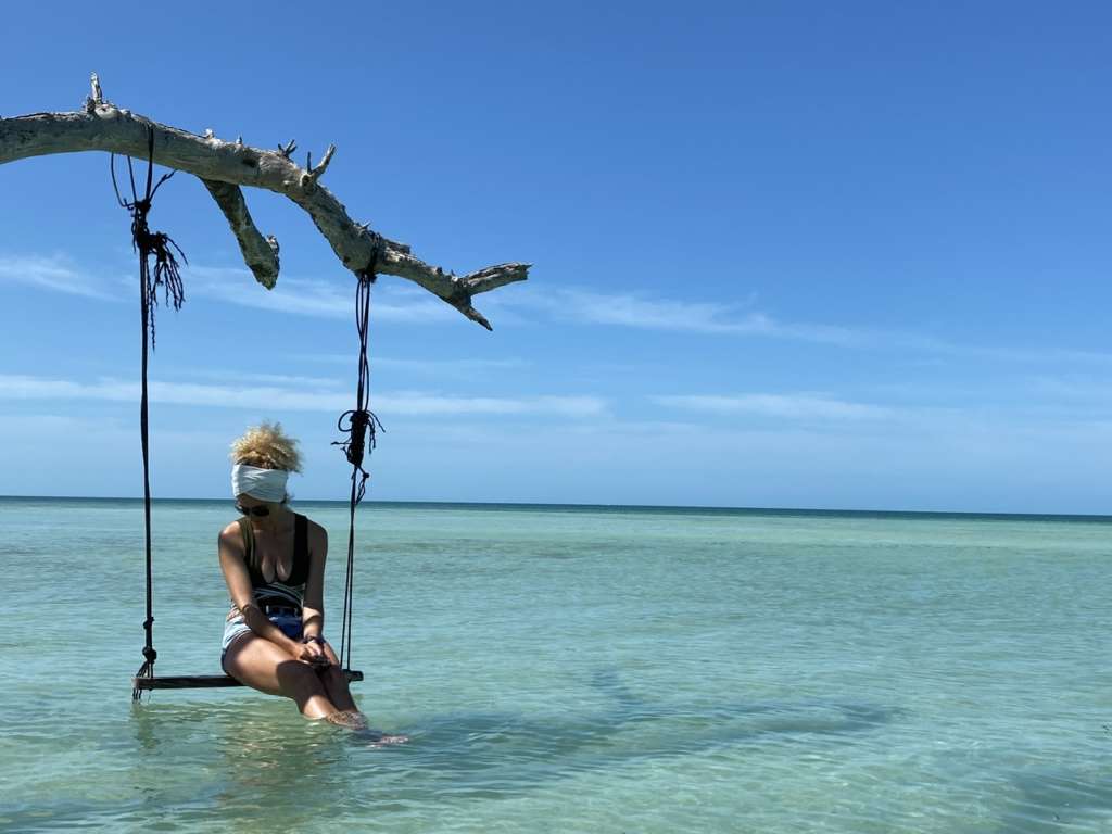 Nouveau stop sur une île encore plus jolie que la précédente où l’on profite de balançoires de fortune. Noah et Zoé se sont assoupis durant la traversée et dorment maintenant comme des biens heureux sur le bateau.