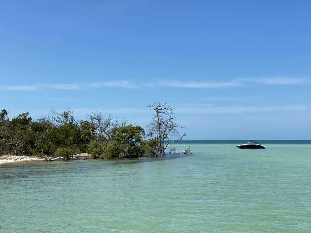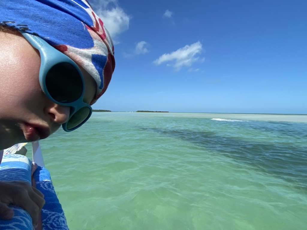 Noah aimerait maintenant qu’on aille plus vite. On a quitté la mangrove donc ca devrait booster normalement selon lui. Mais voila, dans les keys, aller vite c’est compliqué car il y a très peu de fond. Moins d’un mètre dans la majorité des endroits et on comprend que la physionomie et les voies navigables varient beaucoup dans la zone suivant l’état de la marée. Prudence petits pas.