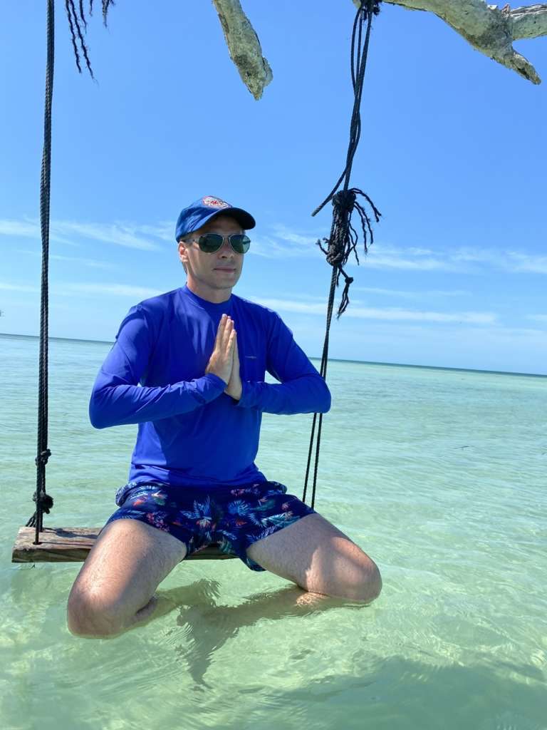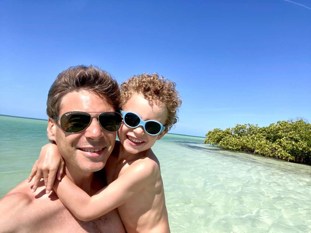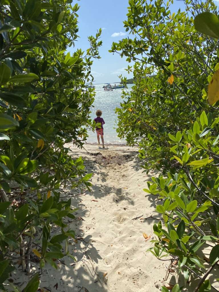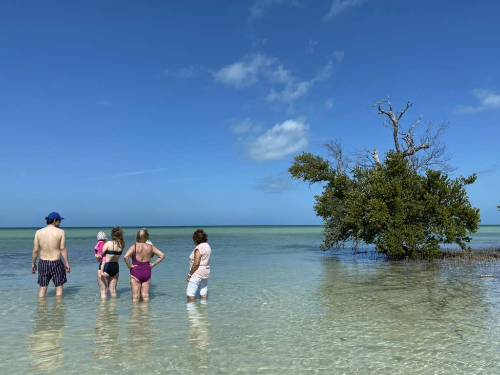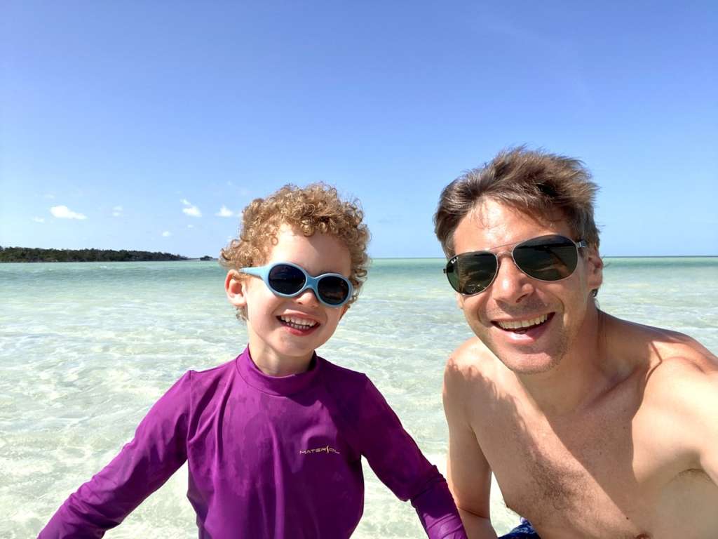 Après avoir quitté la mangrove, on se dirige vers des petites îles au loin, pour découvrir un petit paradis sur terre avec un banc de sable. Celui-ci s’est réduit à peau de chagrin avec la montée de la marée (on avait qu’à être à l’heure), mais on peut marcher sur la plage submergée sur des centaines de mètres.