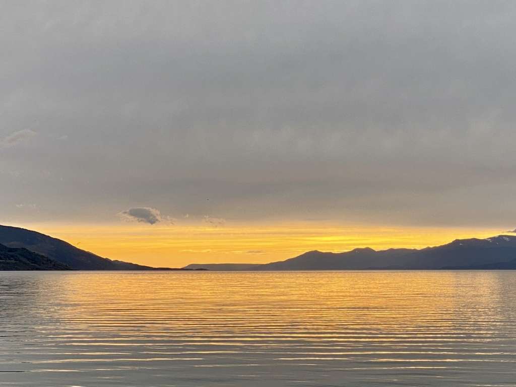Le côté positif de ce réveil très matinal c’est qu’on voit enfin un lever de soleil. Ici le soleil se couche vers 23h30 et se lève vers 5h15 donc depuis qu’on est la, on en avait jamais vu. Il n’y a pas à dire, le lever du soleil sur le canal de beagle, ça a de la gueule.