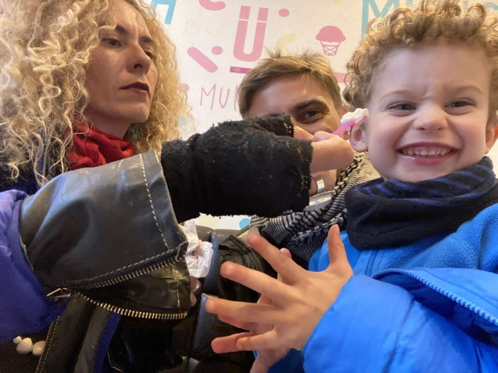 Noah a insisté pour manger une glace, donc on a fini par trouver un endroit qui en vend. Moi je ne l’ai pas vu mais quand Noah est entré les 2 vendeuses en sont restées apparemment bouche-bée (le tombeur de ces dames). Cet enfant me ferait-il de l’ombre ?… Du coup Free toppings, des minauderies. Noah is so international 😉