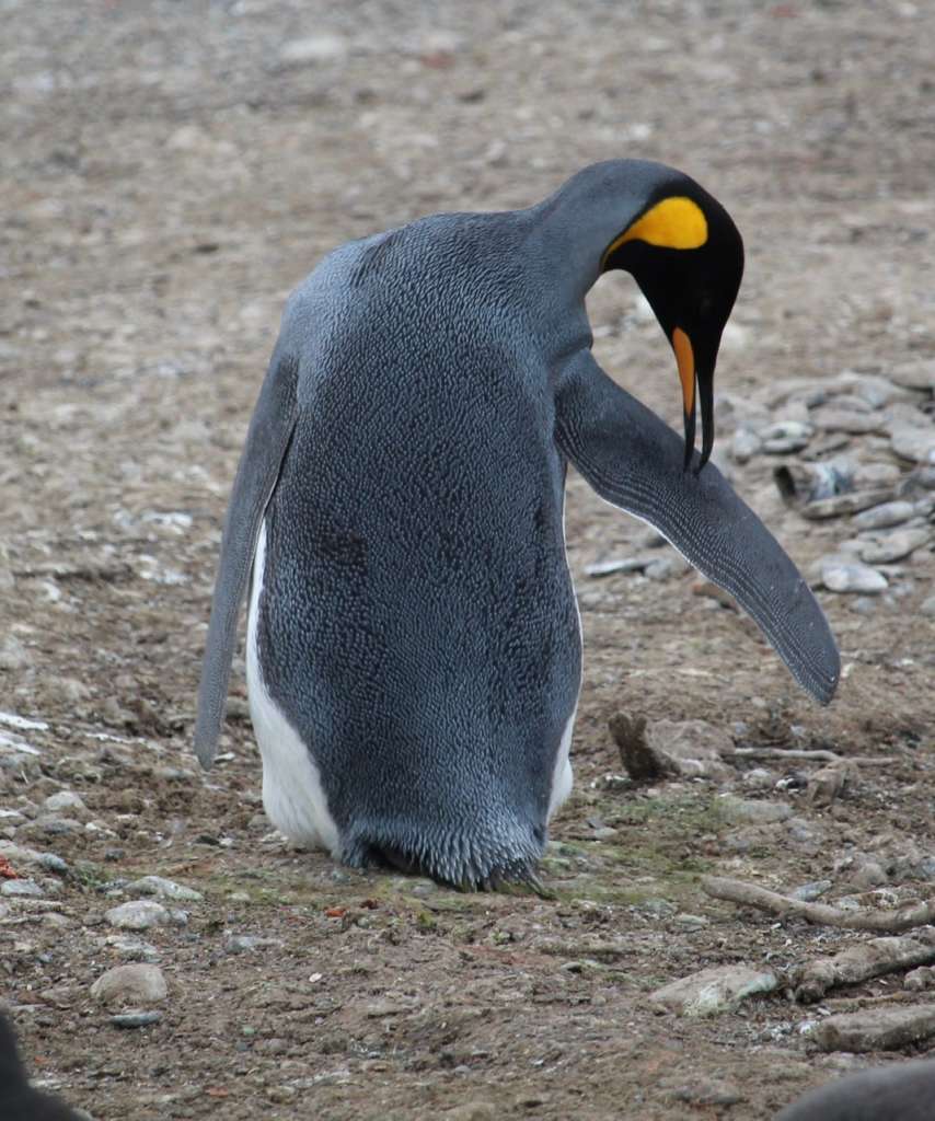 Les manchots royaux, en revanche, sont beaucoup plus grands et plus élégants avec leurs pattes et bec orange, mais faisant leur nid à même le sol en déplaçant des cailloux et des branches, les petits sont plus visibles et moins protégés. Avec seulement 2 œufs par saison, pas étonnants qu’ils soient moins nombreux. En même temps il y a plus de gueux que de rois non ?