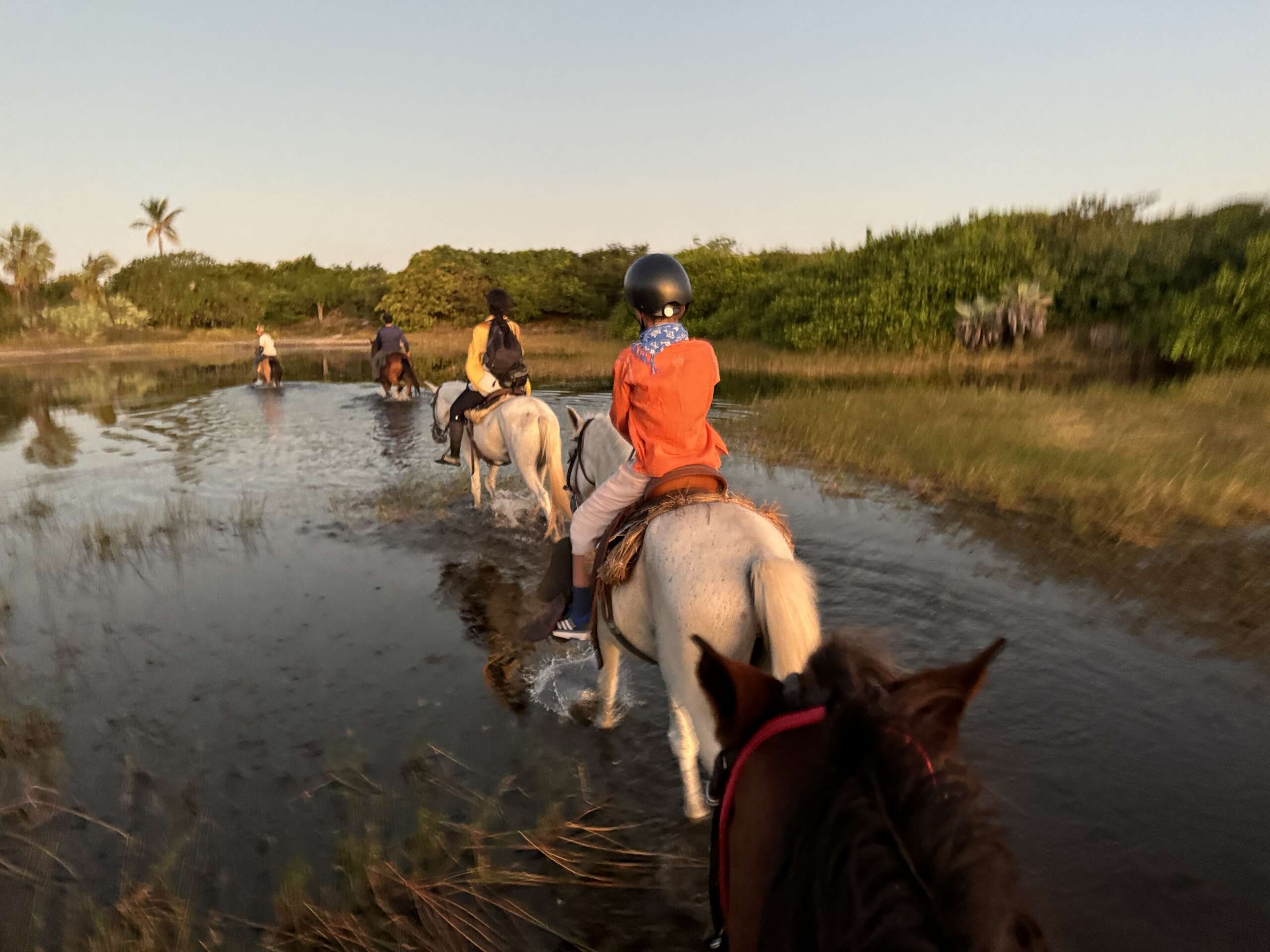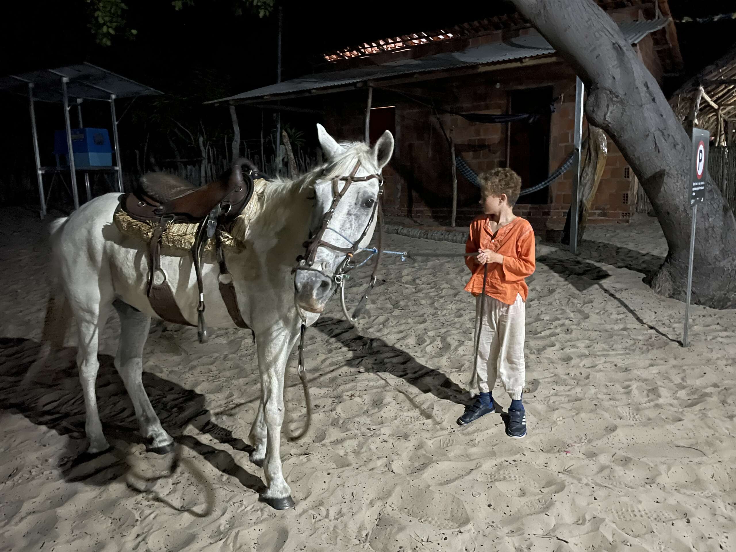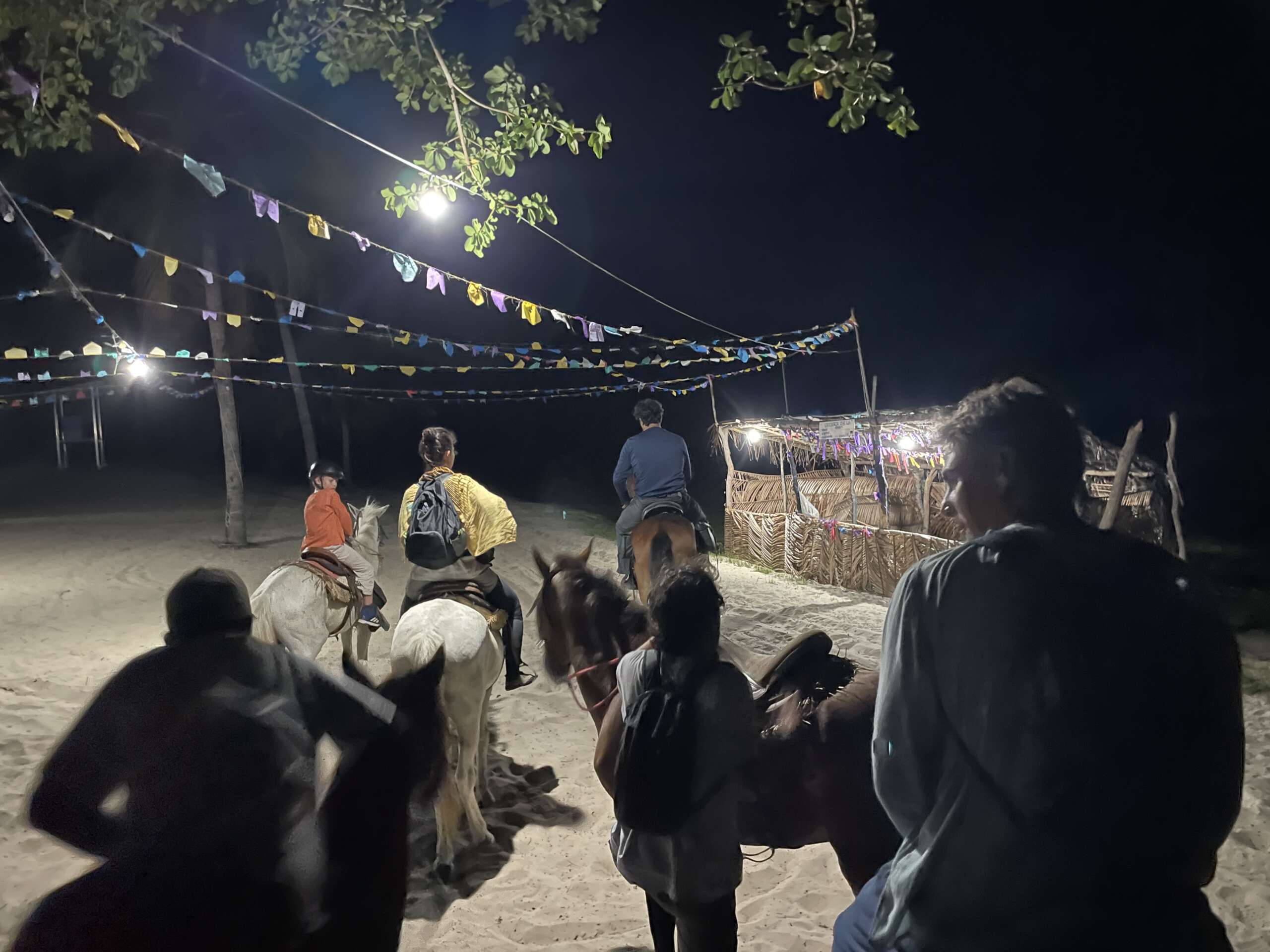 Autant les 2 derniers soirs on avait eu une quasi pleine lune, autant ce soir, pas de lune à l’horizon. Nous voici donc plongés dans le noir absolu, à cheval, Noah tout devant, nous tout derrière car il est parti dare dare juste derrière le guide. Honnêtement quand je dis qu’on ne voit rien, c’est vraiment rien. A peine finit on après quelques minutes à distinguer petit à petit a silhouette du cheval devant nous pour peu qu’on soit à moins de 3 mètres.