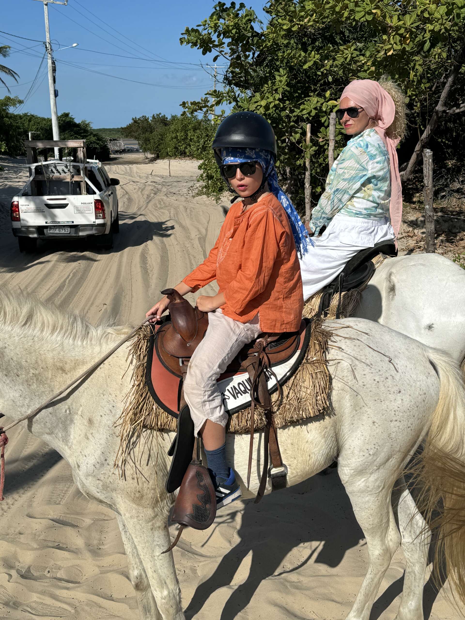 Virginie était de son côté un peu inquiète, sachant qu’elle n’avait fait qu’une fois du cheval dans sa vie – avec moi d‘ailleurs – aux iles marquises, il y a près de 15 ans.