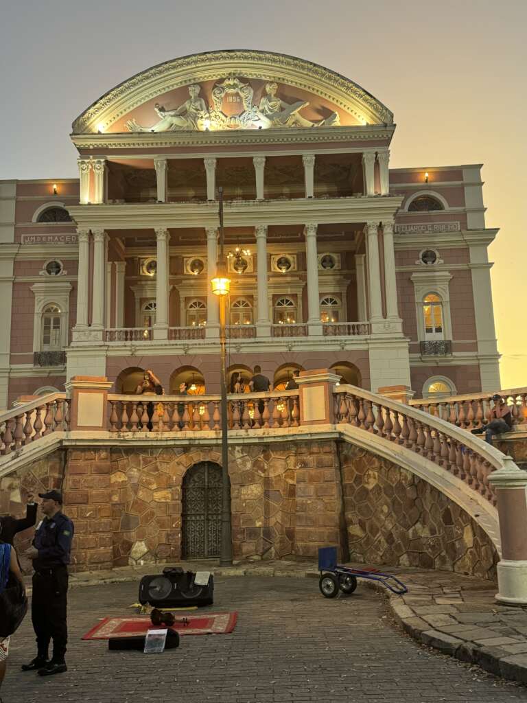 De toute façon, on va pas avoir le temps de visiter en arrivant à 18h et en repartant à 7h demain matin.  En tout cas, On est idéalement situé au Juma opéra Hôtel, qui, comme son nom l’indique, se situe exactement en face de l’opéra historique de Manaus. L’hôtel pour le coup est plein de charme et ça tombe bien qu’on soit là, car on a réservé un concert de Jazz à l’opéra de Manaus ce soir. Pas possible de faire plus près.