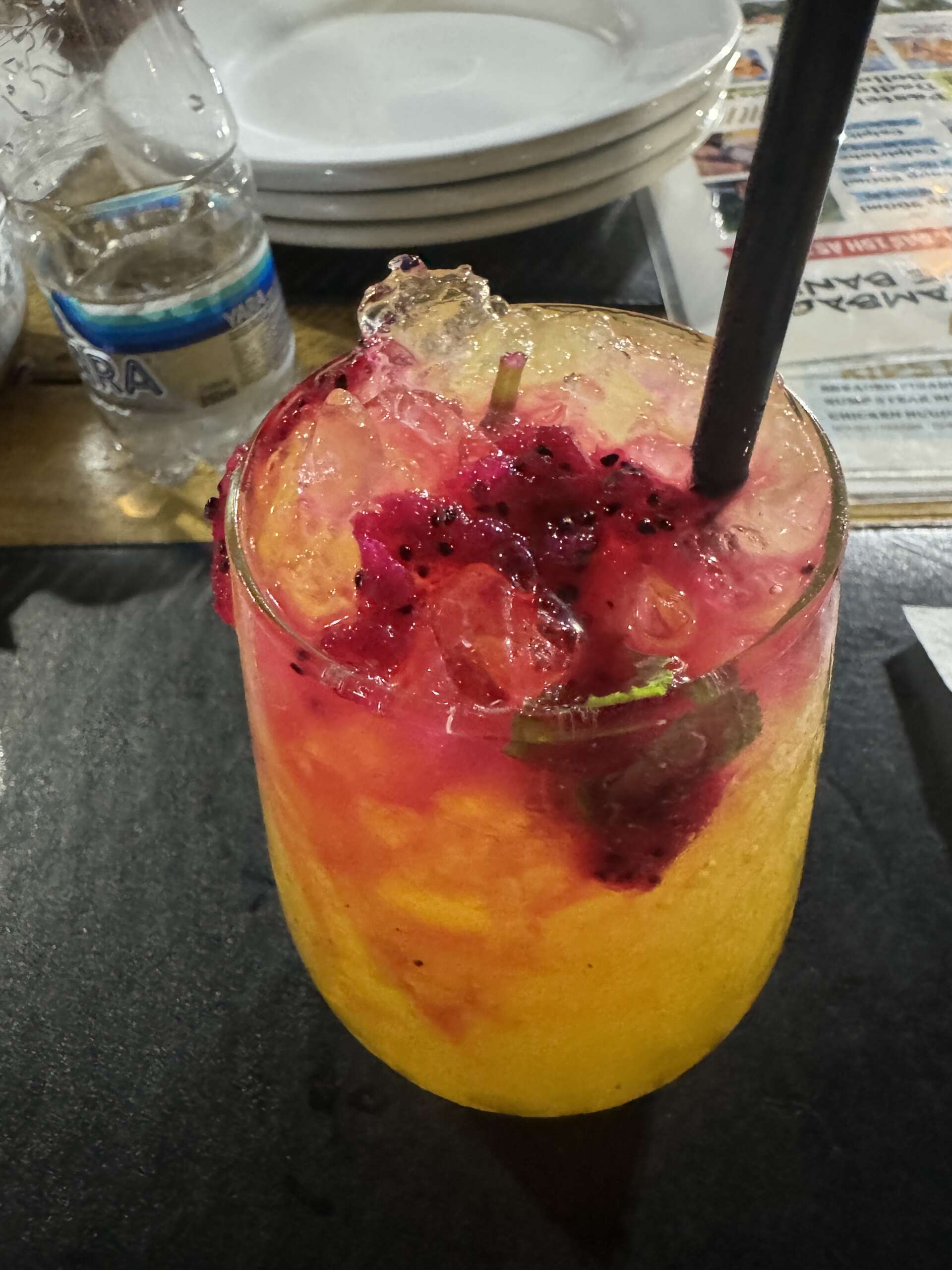 Arrivé à l’entracte, il dormait plus que profondément. Virginie va chercher de l’eau. On est quand même aux portes de l’Amazonie, donc question humidité et chaleur on est servi, même s’il y a une forme de rafraichissement dans cette salle qui la rend presque plus agréable que les salles parisiennes (en même temps c’est pas difficile).