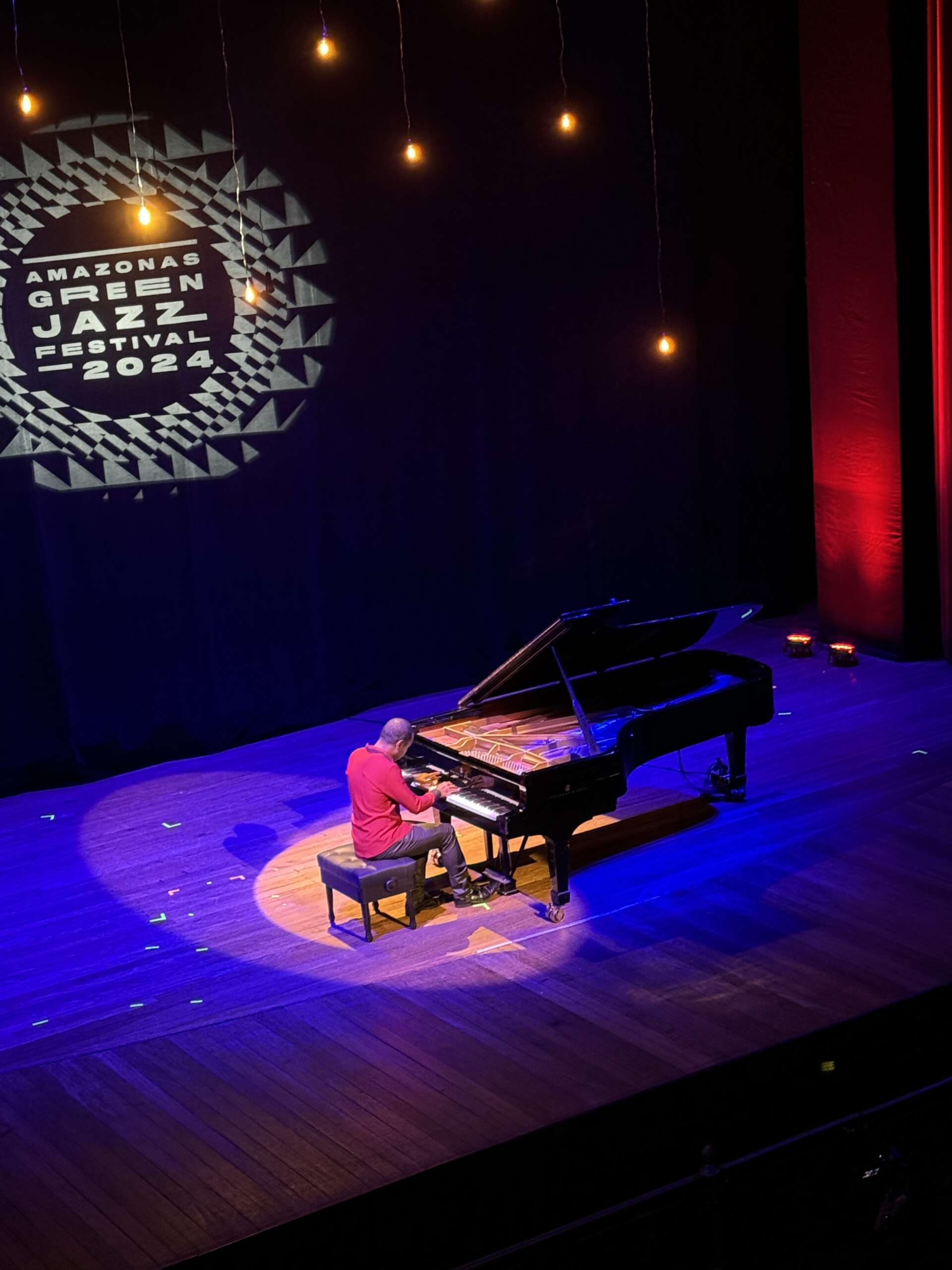 En fait, elles sont géniales. Une loge au 1er étage juste pour nous et située juste dans l’axe avec la vue sur les mains du pianiste. Ah oui, parce que j’ai oublié de vous dire que la première partie du spectacle c’est un solo jazz de pianiste. La seconde partie après l’entracte, on ne le savait pas, mais c’était un groupe de jazz avec une chanteuse.