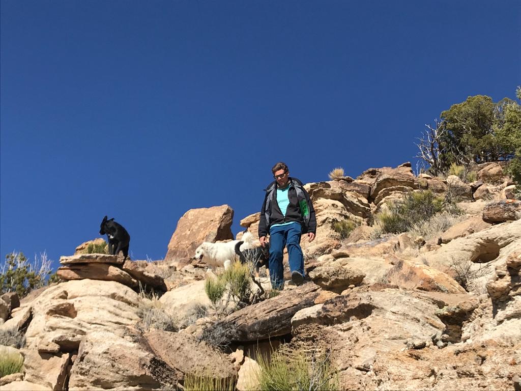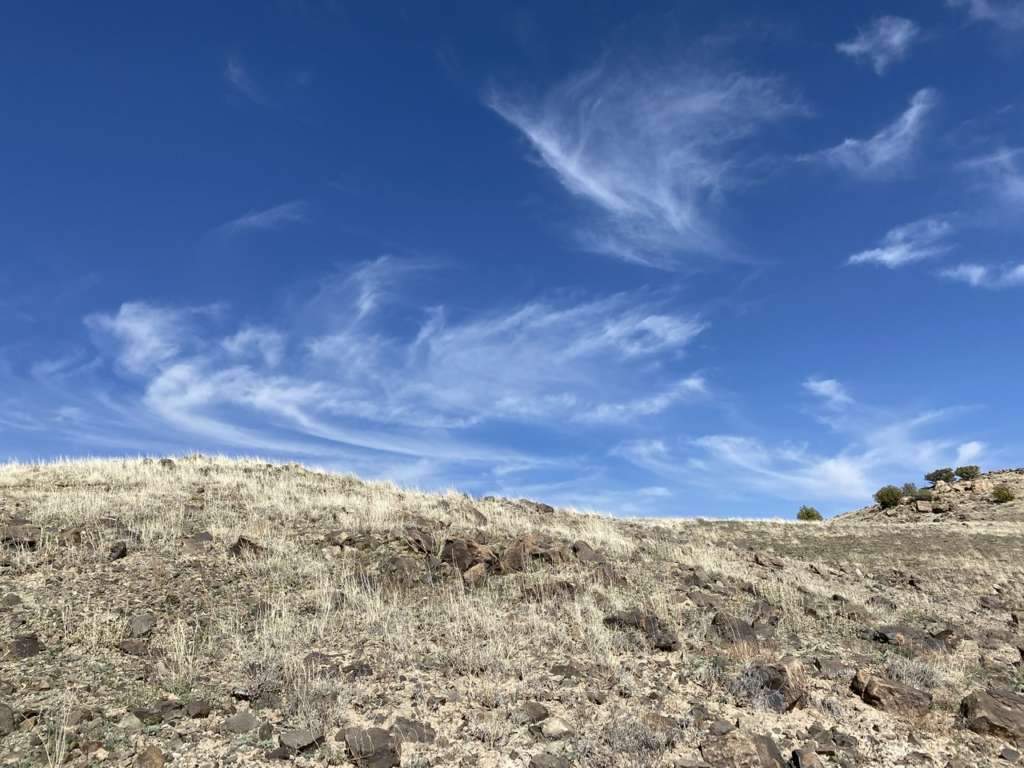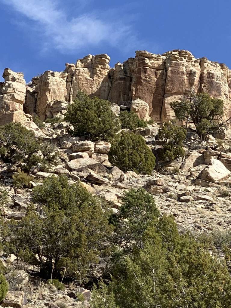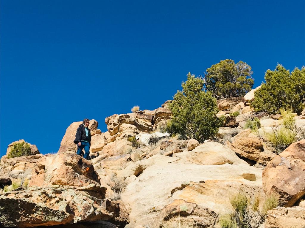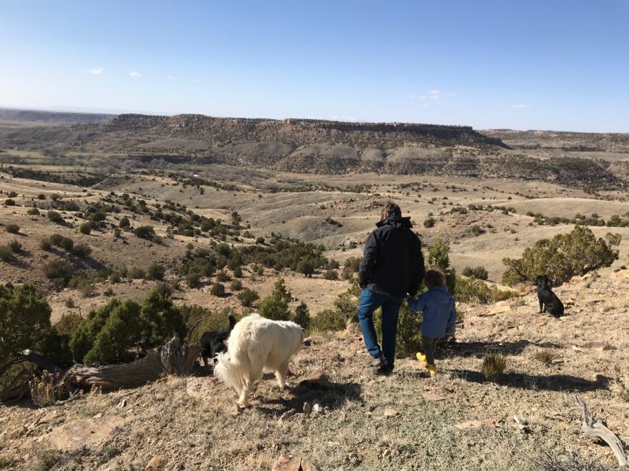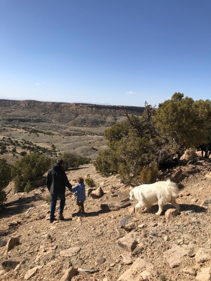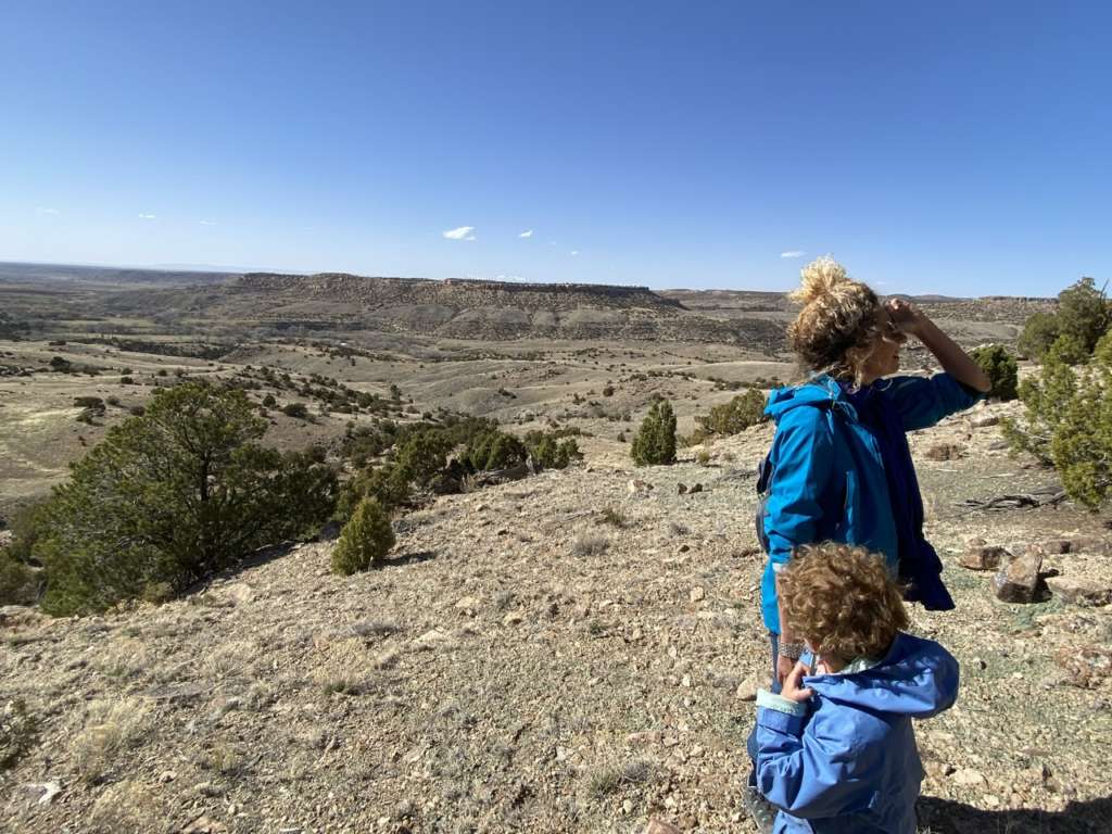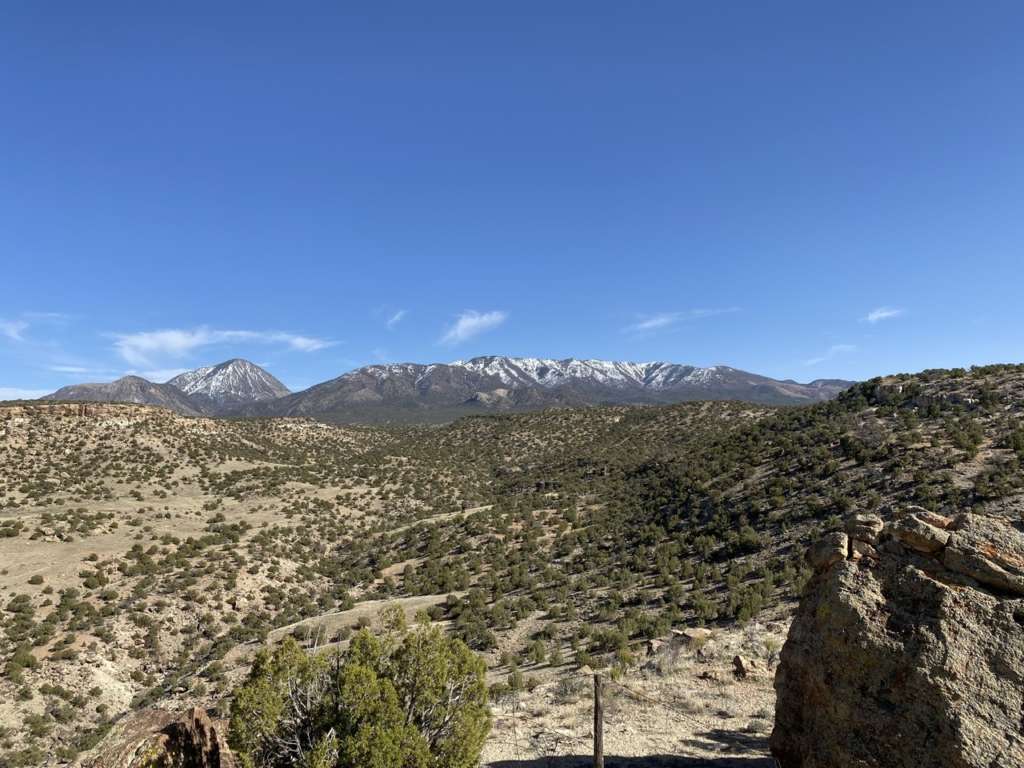 Arrivé en haut, pas vraiment de vue à couper le souffle. Juste une vue plus dégagée sur les Ute Mountains enneigées qu’on apercevait du ranch, mais c’est un truc typiquement humain ça. Vouloir toujours grimper en haut du sommet.