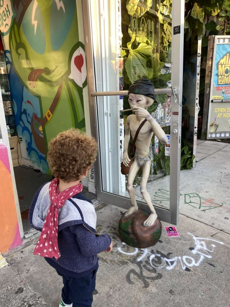 C’était notre dernière soirée à Miami – et aussi avec nos canadiens qui rentrent eux demain matin–. Noah s’endort dans la voiture comme un bien heureux, le sentiment du devoir accompli, son œuvre créatrice à jamais inscrite à Wynwood.