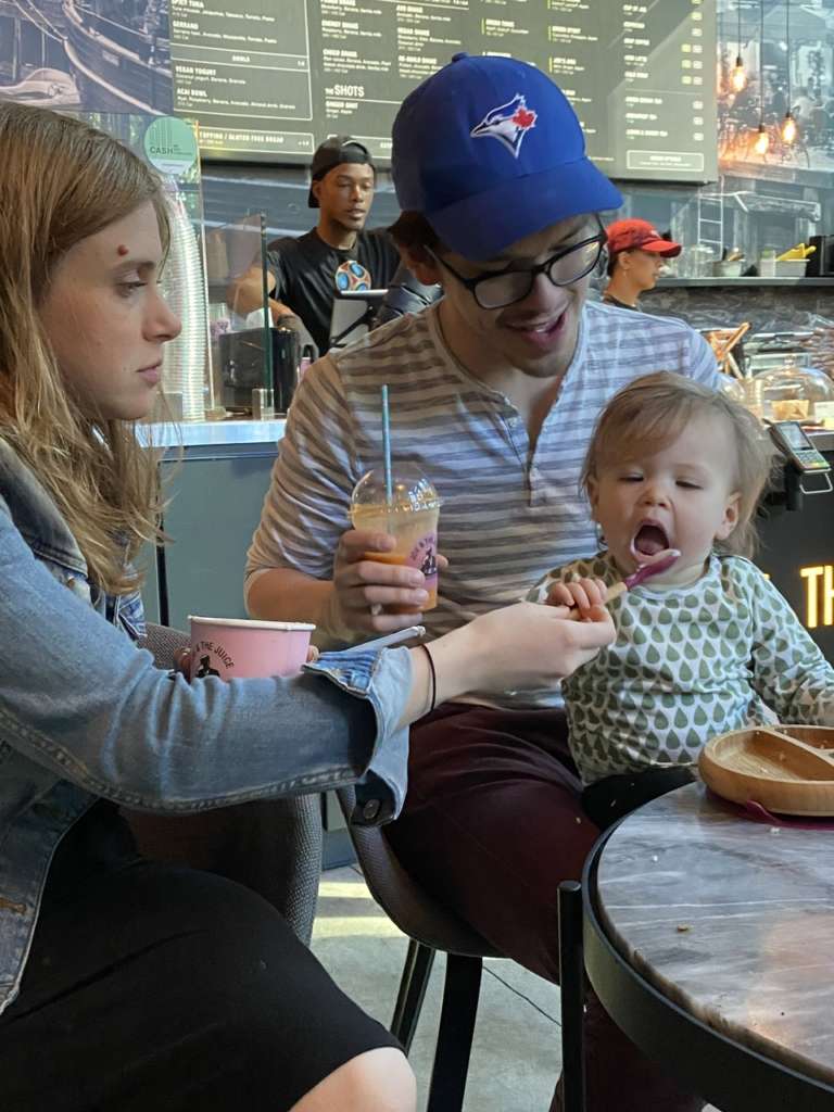 Du coup, direction Key Biscane chez Joe & the Juice (qu’on avait déjà expérimenté en Islande et qui est une super chaîne de bar à jus), en mangeant des patisseries de chez Zao the baker que Jenn avait été chercher lors d’une ballade aux aurores (eux, pour le coup ils se sont vraiment levés tôt, entre Zoé qui comme prévu ne s’est pas rendormie hier soir, et quand ce fut enfin le cas, le réveil de la chambre d’hôtel qui s’est déclenché à 5h du mat’ – client de la veille que les équipes de ménage avaient oublié de déprogrammer). En tout cas, si les parents ont l’air un peu au bout de leur vie, ca n’empêche pas Zoé d’avoir un bon coup de fourchette.
