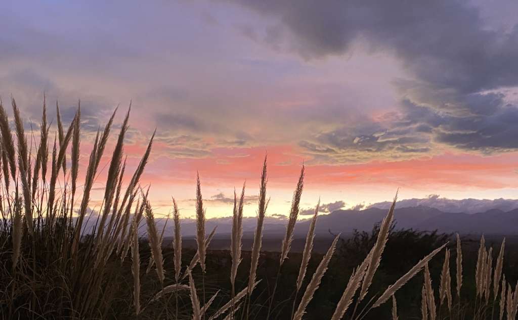 Le ciel est toujours orageux mais il ne pleut plus. On dîne devant la cordillère des Andes après une longue journée. Que demander de plus.