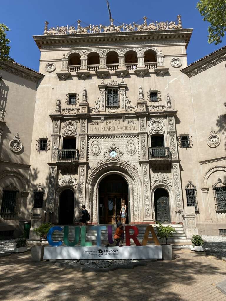 Le décor de notre prochaine semaine étant planté, nous partons faire un tour à pied voir les 2 places « dignes d’intérêt » (Le Lonely Planet se bornant à vanter l’importance de « respirer l‘atmosphère de la ville » qui est l’expression consacrée lorsqu’il n’y a rien à voir mais qu’on ne veut froisser personne parce qu’on parle quand même d’une ville de 120 000 habitants). On galère ensuite pour récupérer du cash car on a compris que les distributeurs et les machines à cartes se feraient rares une fois partis de Mendoza (impossible de retirer plus de 80€ au distributeur par carte et j’avais laissé mon passeport à l’hôtel pour ne pas me le faire piquer ce qui s’est avéré une bonne idée jusqu’à ce que l’agent de change me dise que sans passeport il ne me changeait pas de cash.