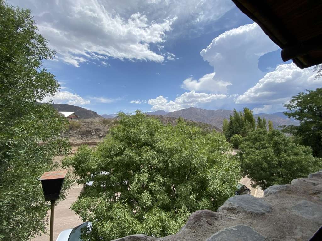 Vers 12h30 on approche des contreforts de la cordillère, à 1 700 mètres d’altitude, Potrerillos, un (pour ne pas dire le seul) minuscule bourg à la ronde. On a lu dans le Lonely Planet Que si on suit un chemin de terre sur quelques kilomètres après ce bourg, Il y a un endroit bien caché pour se restaurer : La Escondida. (Et c’est vrai, pour être caché, c’était bien caché).