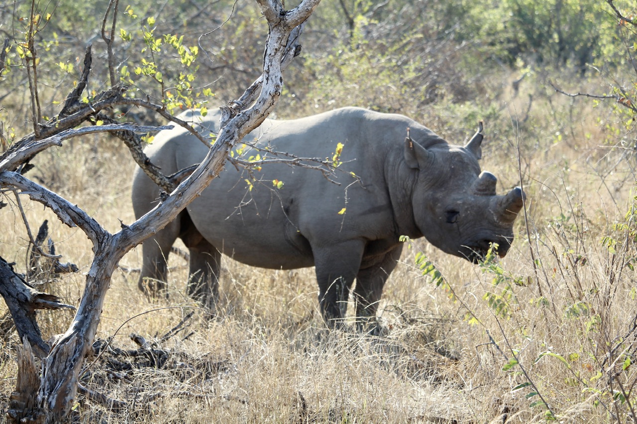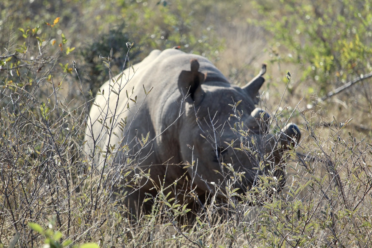 Après avoir passé un bon bout de temps brocouille comme on dit dans le bouchonnois, Hendrick accélère subitement. Pour une fois, c’est un autre guide qui lui renvoie l’appareil et on a tôt fait d‘arriver à la hauteur d’une autre jeep. Moment toujours particulier des safaris ou les guides basculent sur un dialecte local incompréhensible ou doit se mêler un mélange de partage d’infos et de remarques sur les touristes qu’ils trimballent (enfin ils le font peut-être pas mais moi à leur place je le ferai). En tout cas l’échange est productif car ils viennent de quitter une zone où l’on y découvrira un rhinocéros noir.