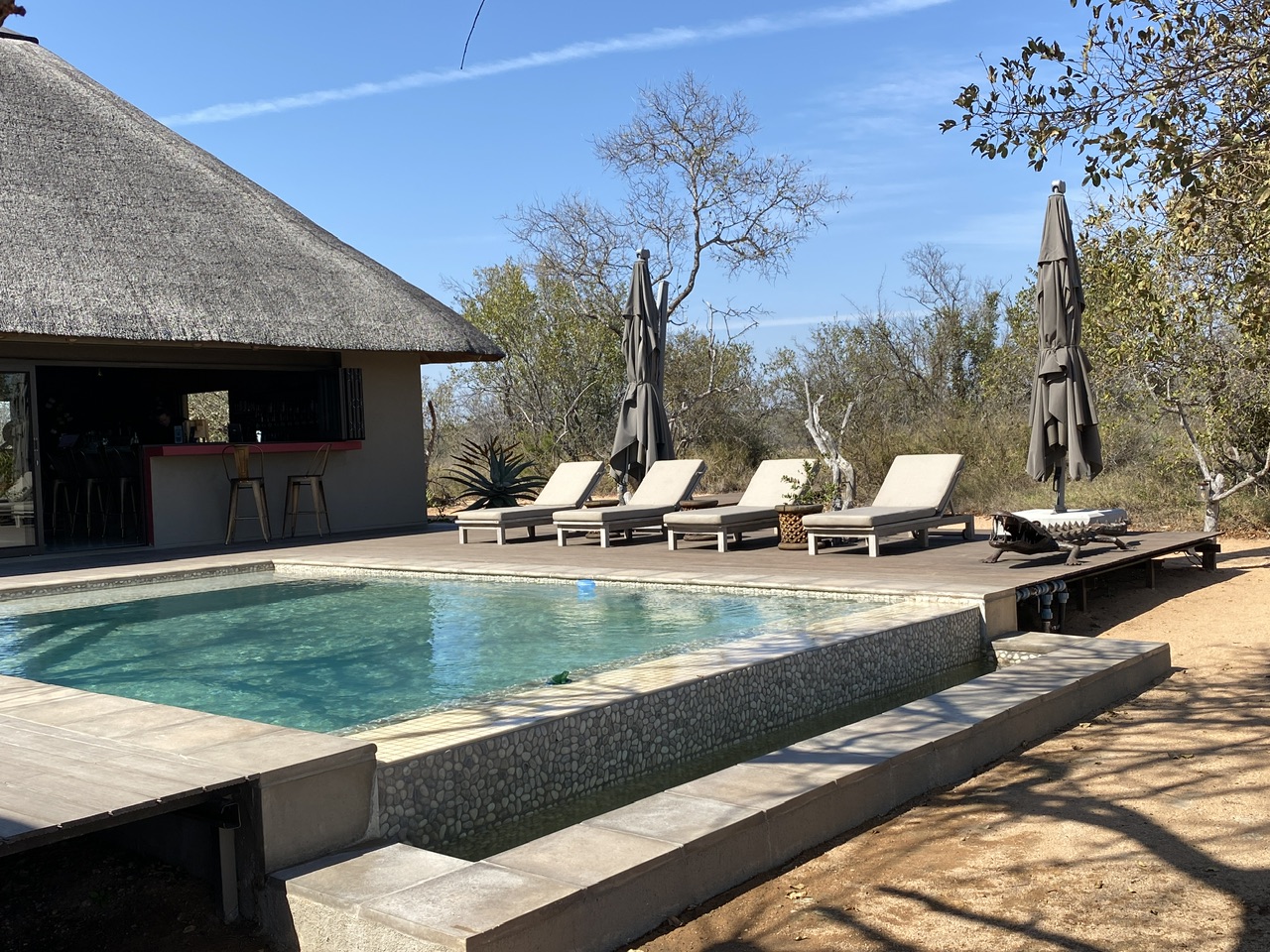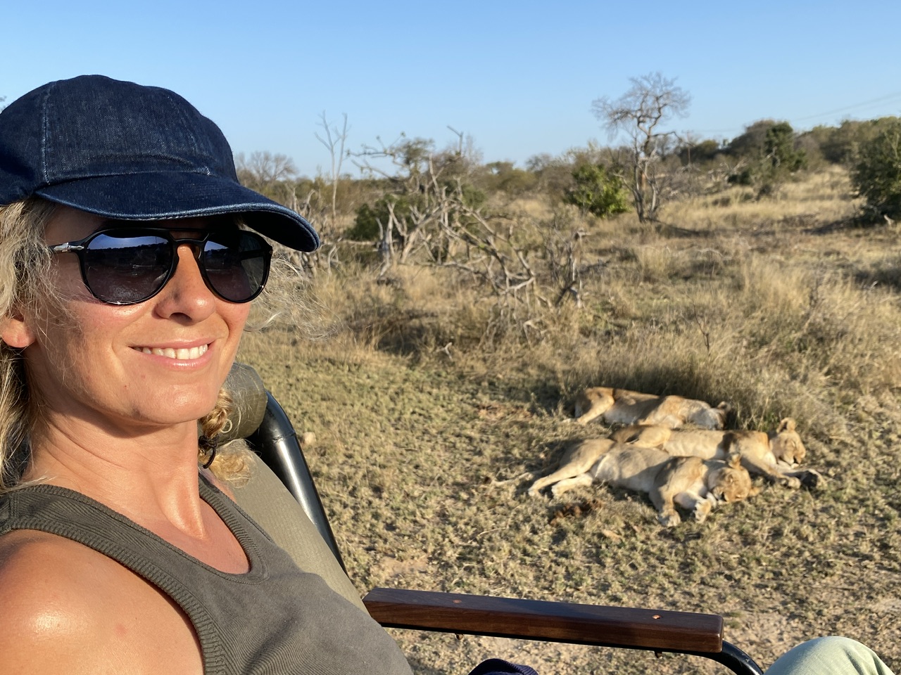 J’en profite pour demander à Hendrick comment ils les repèrent les lions. Ce matin, on a eu de la chance, mais sinon, dans la réserve de Balule qui fait environ 40 000 hectares, il y a 2 zones. Dans notre zone, 6 lodges coopèrent. Sachant qu’une troupe de lions comme celle-ci évolue sur un territoire de 15 à 18 000 hectares, on cherche un peu une aiguille dans une botte de foin. Et encore les lions se repèrent plus facilement, mais pour le léopard d’hier qui se planque le gros de la journée par exemple, ça faisait plus de 10 jours qu’ils n’en avaient plus vus.