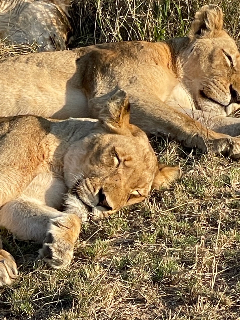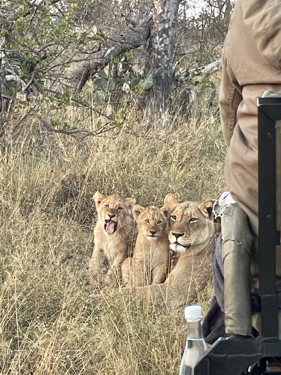 Tandis qu’une lionne semble préposée au babysitting avec tous les lionceaux, les 3 autres roupillent et ne semblent absolument pas préoccupés par le fait que nous sommes si près d’elles qu’en se baissant on pourrait leur faire une papouille sur la tête.