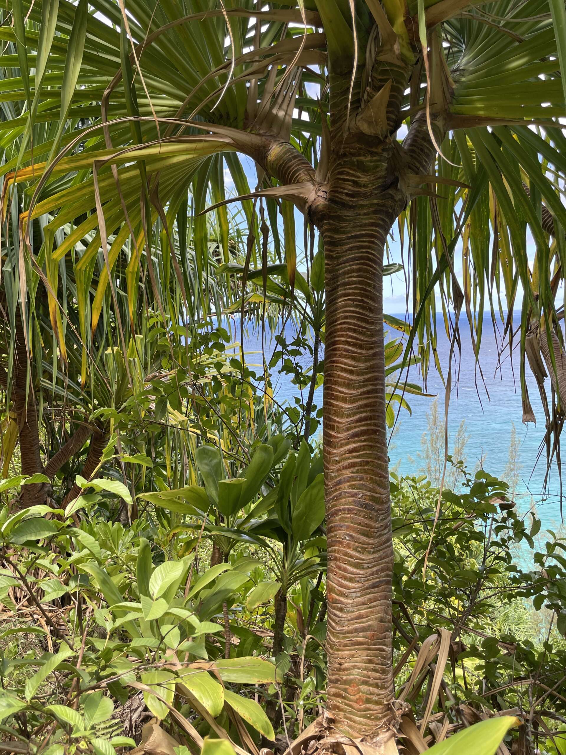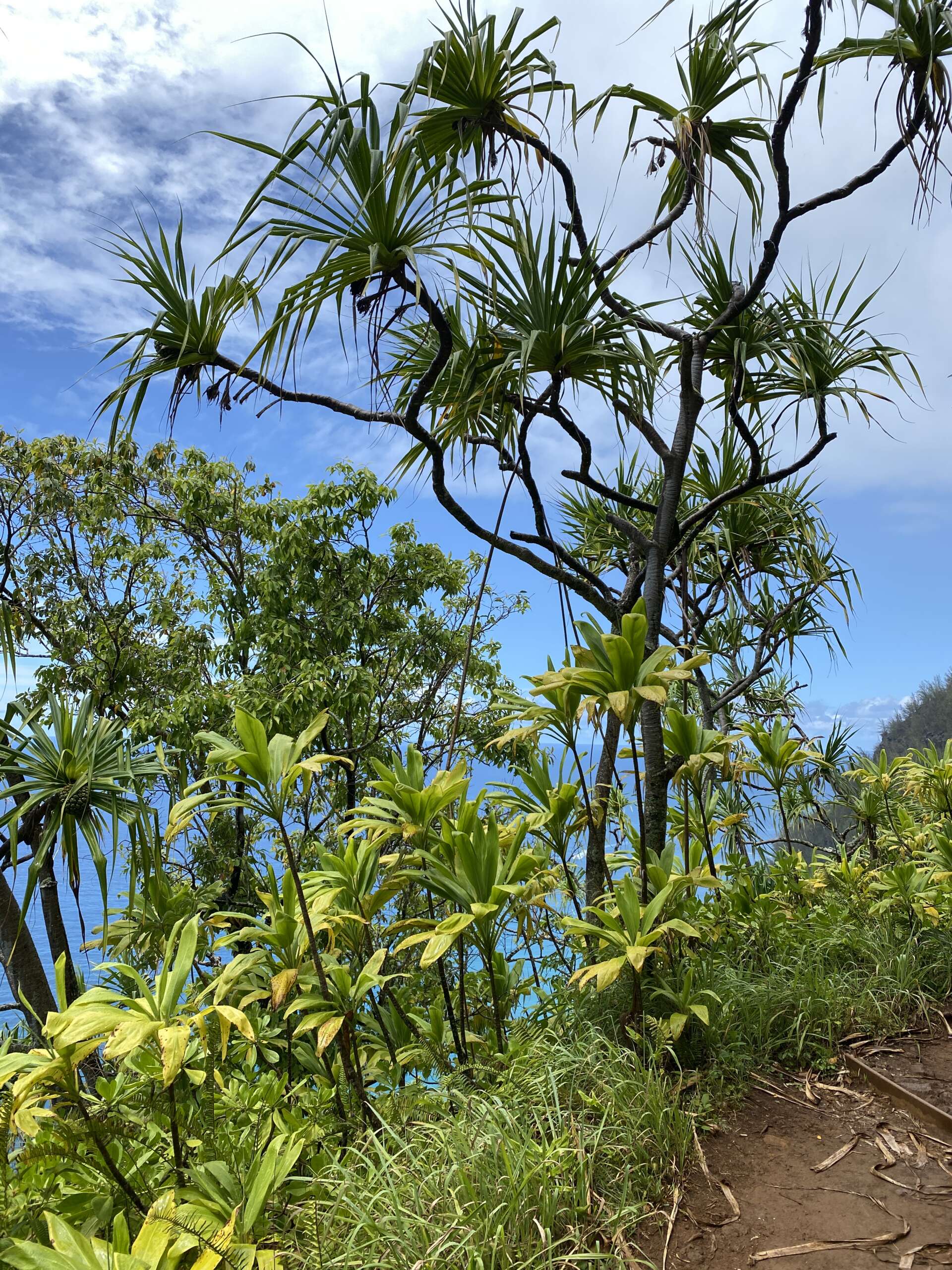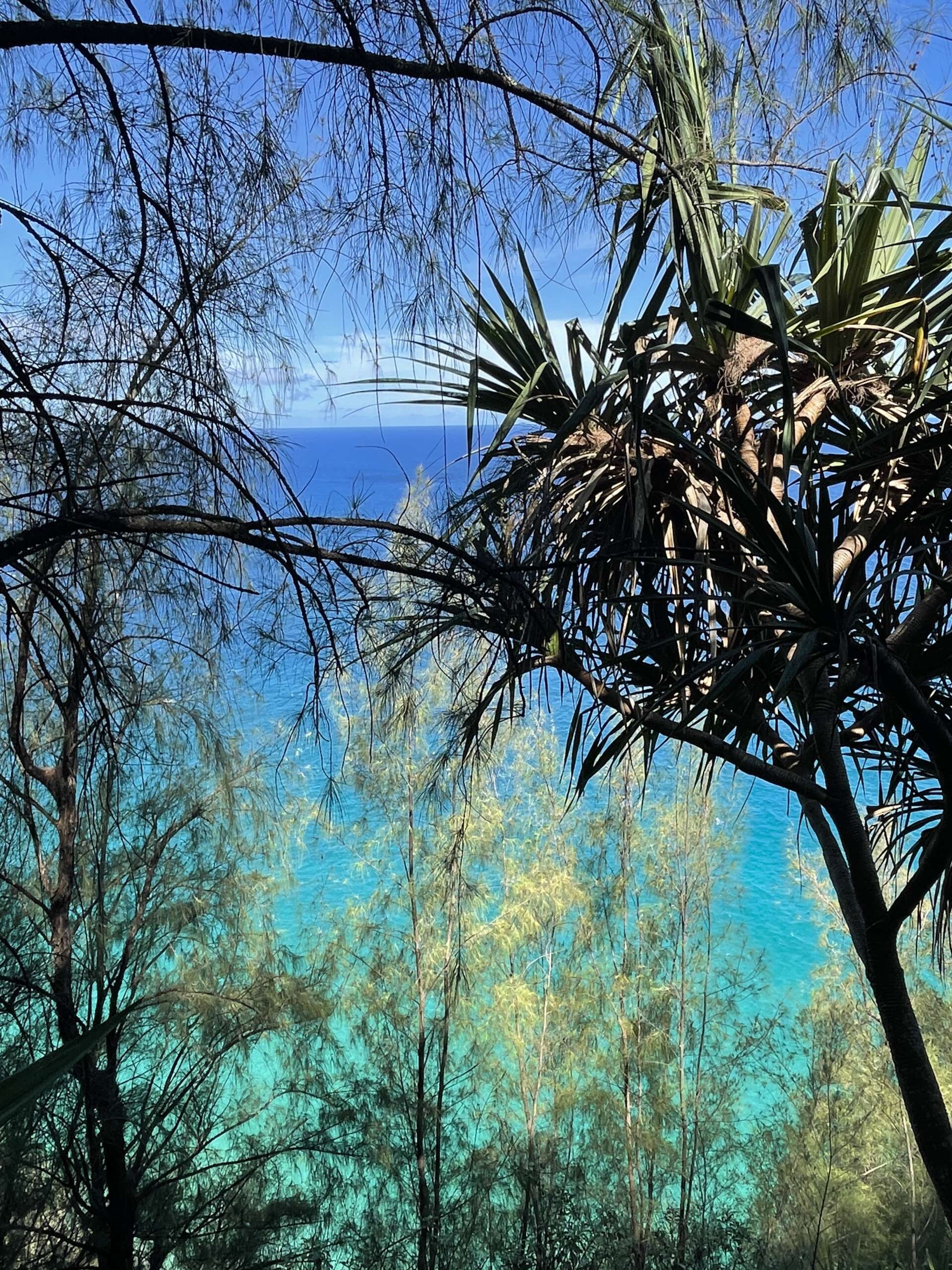Après un rapide briefing d’un ranger sur la dangerosité du trail qu’on n’écoute que d’une oreille parce que depuis qu’on est là on ne fait que voir des panneaux qui nous annoncent des morts horribles par noyade ou écrasement de rocher chaque fois qu’on randonne, on prend la direction de la plage de Ke ‘e d’où un panneau annonce enfin le départ du Kalau trail.