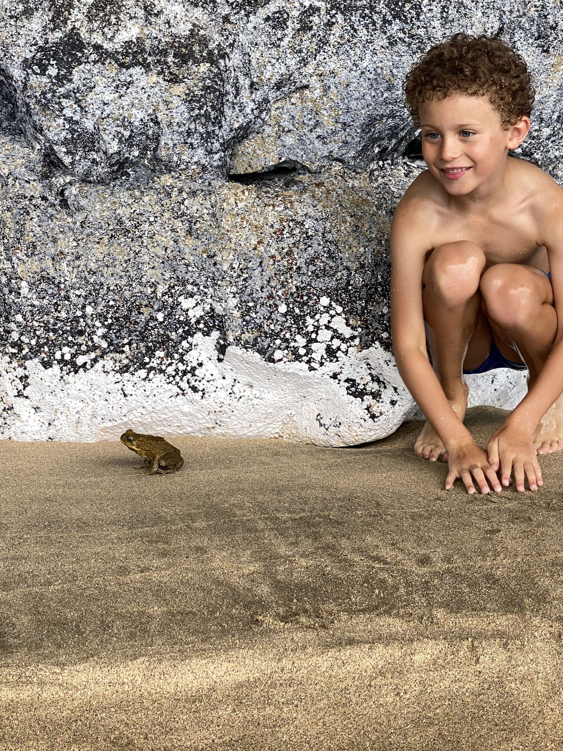 Rajoute à cela le fait qu’on découvre des crapauds d’eau de mer qui voyagent l’un sur l’autre (6ème kif), Noah est comblé et ne s’intéresse mais alors plus du tout à nous.
